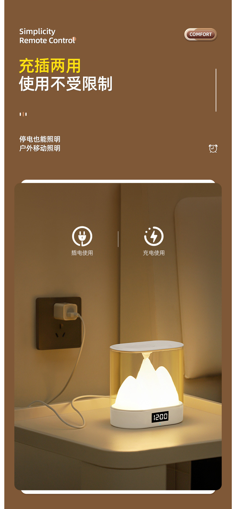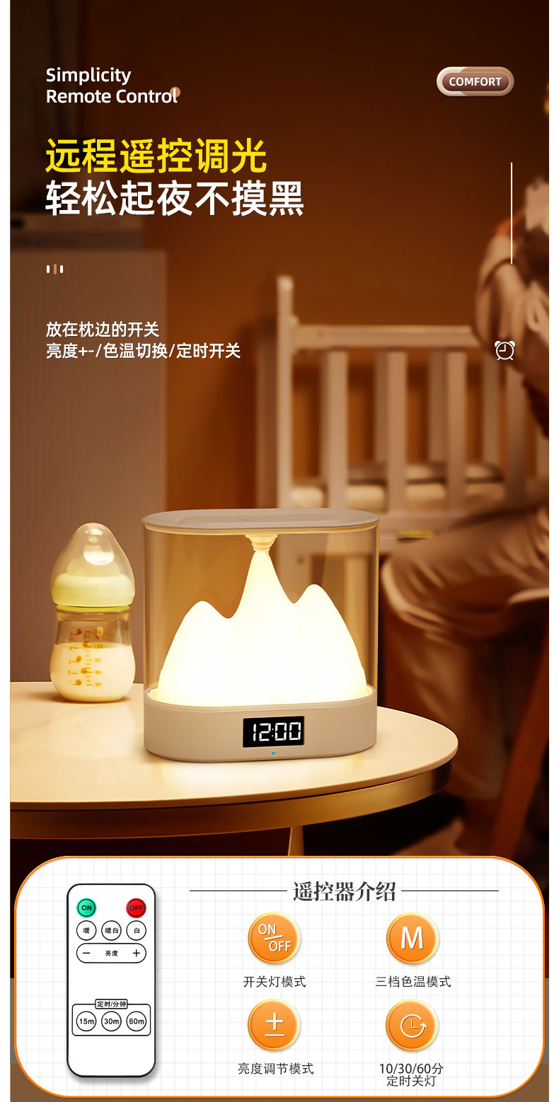mountain oval touch lamp charging touch small night lamp bedroom bedside ambience light night warm light with sleeping eye protection table