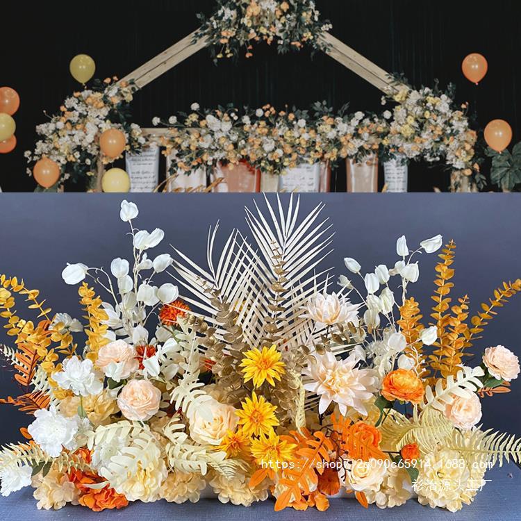 scattered tail champagne with orange flower row