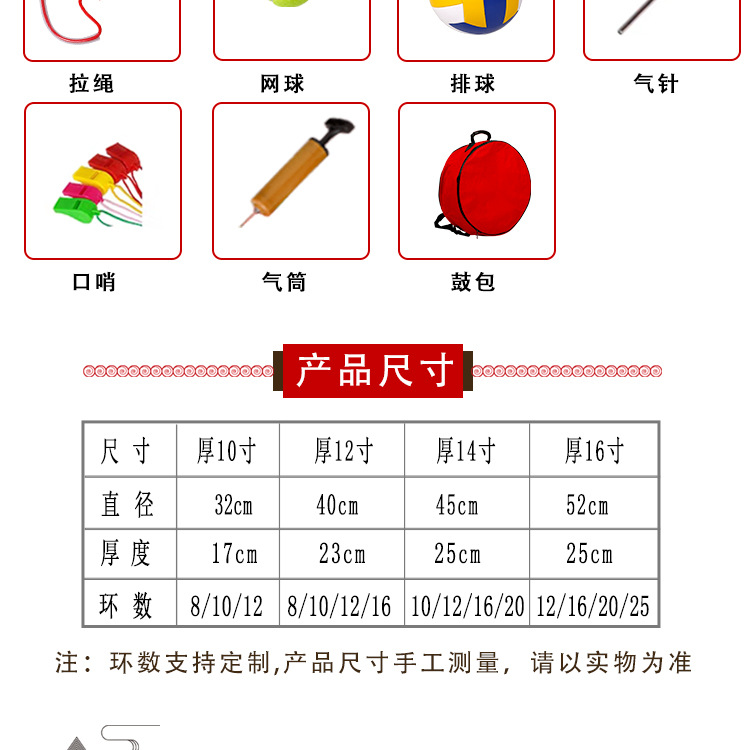 12-inch thick 16 ring + drawstring + volleyball + ball pulling + tennis + whistle + inflator