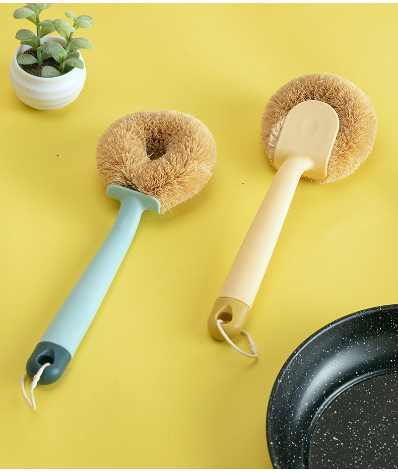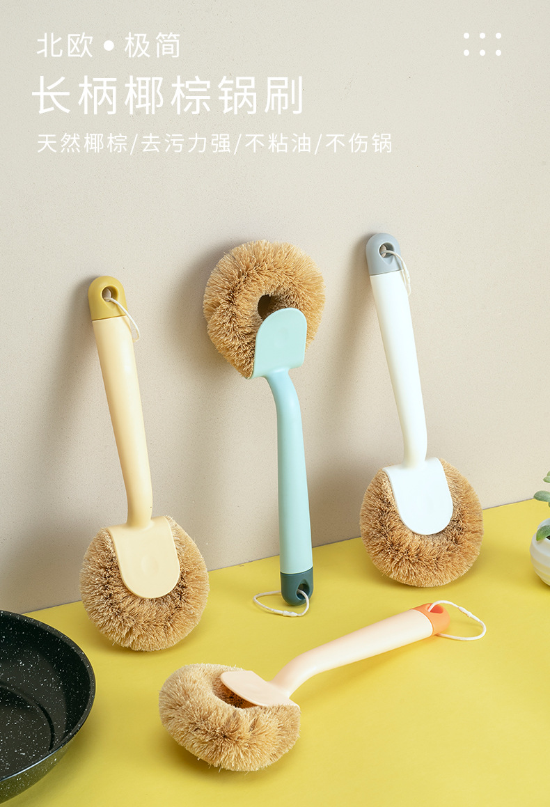 wok brush artifact washing wok brush household kitchen oilproof long handle coconut palm does not hurt wok brush bowl broom bowl brush handle