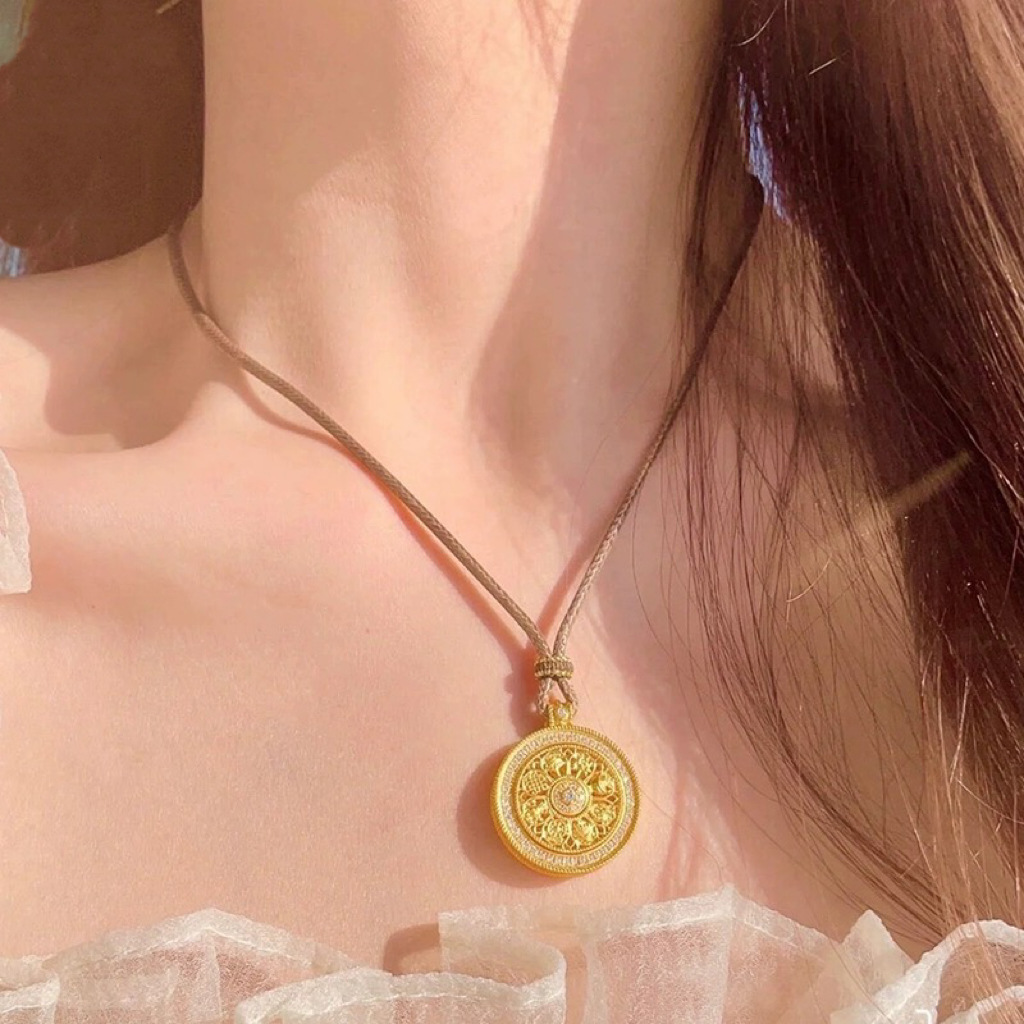 diamond eight-treasure compass pendant + golden balls black rope