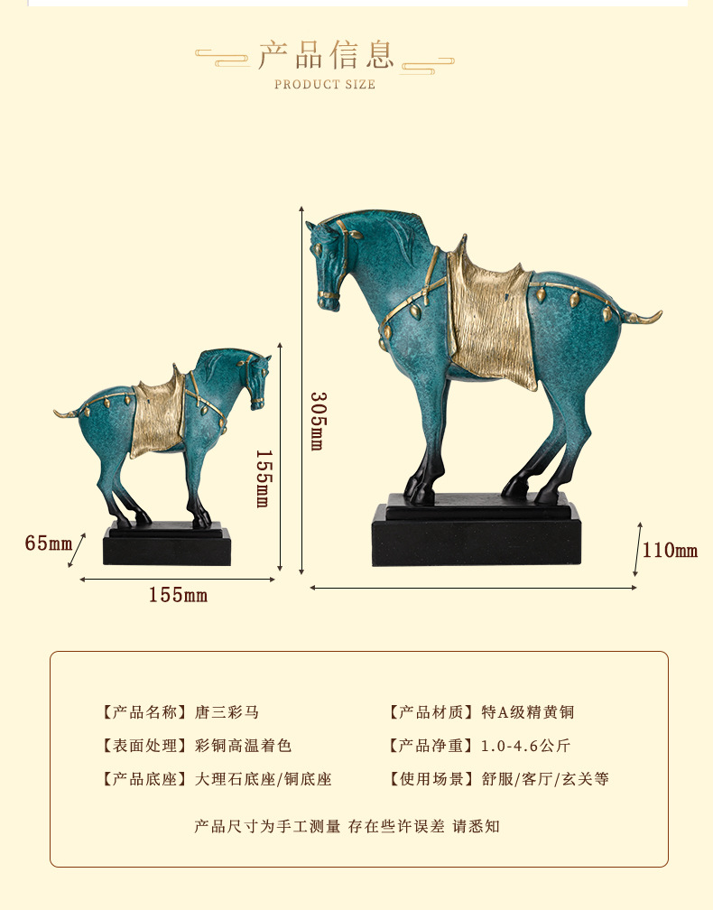 pure copper tangsancai horse small size