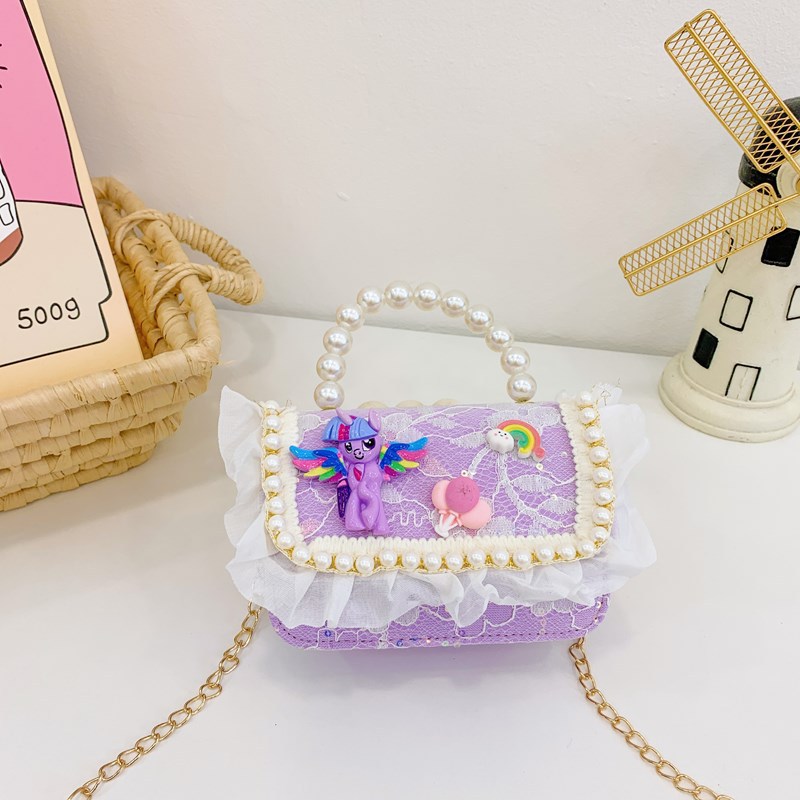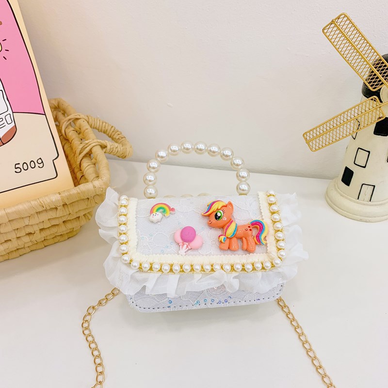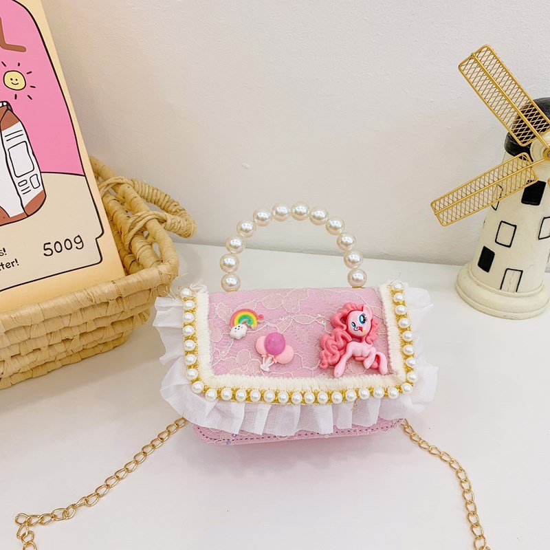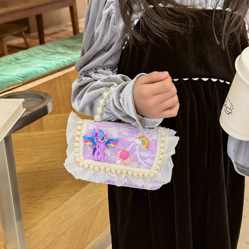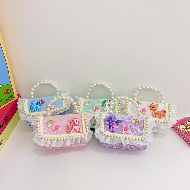 kid's messenger bag cartoon cute laced one-shoulder bag little pony princess small backpack girl pearl hand coin purse