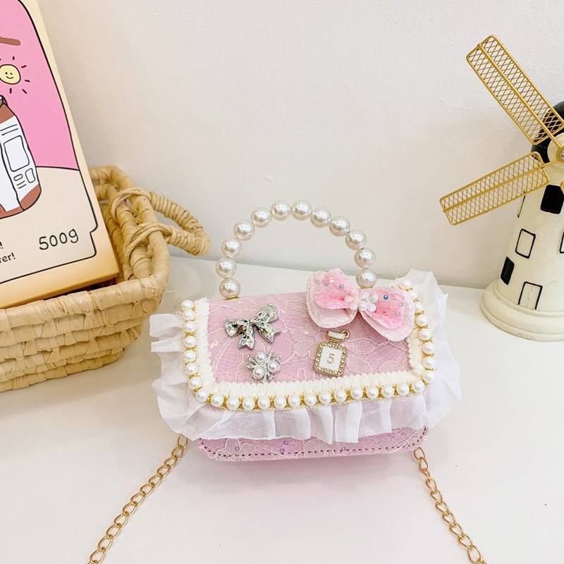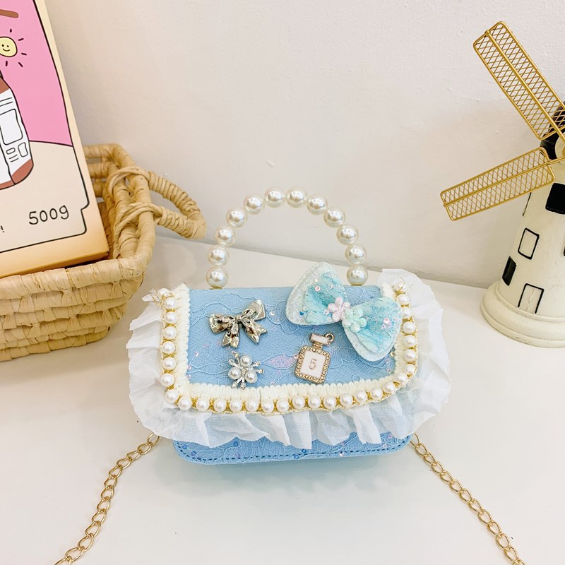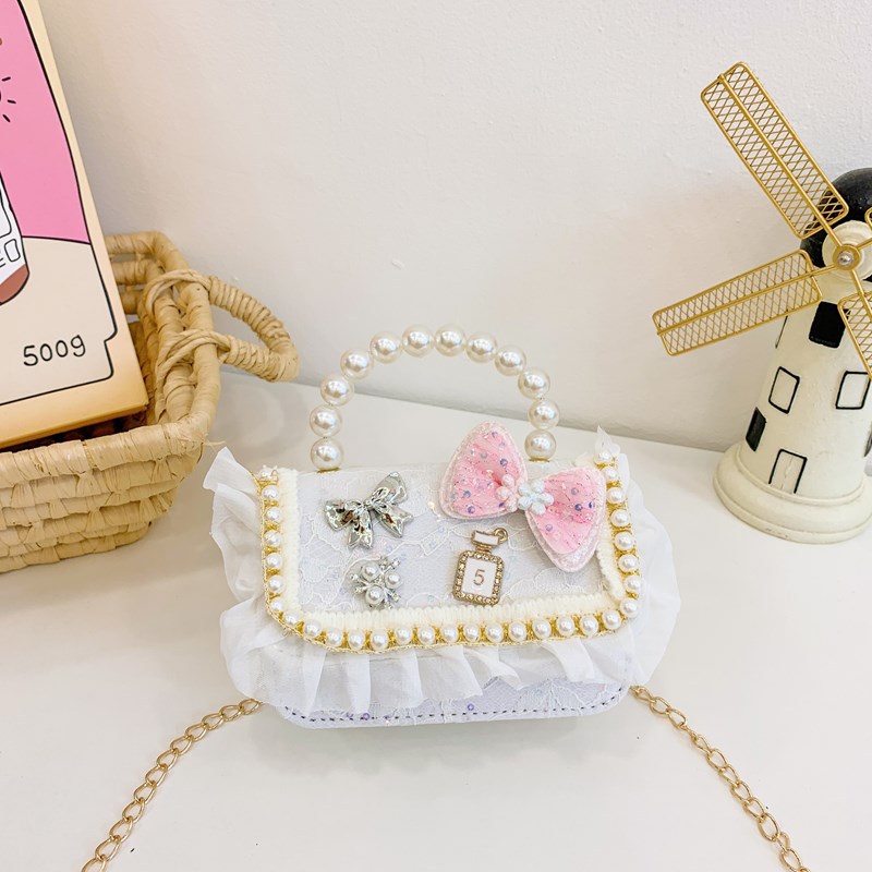 new children's bags lace lace girls' one-shoulder bag bow pearl tote girls change crossbody bag