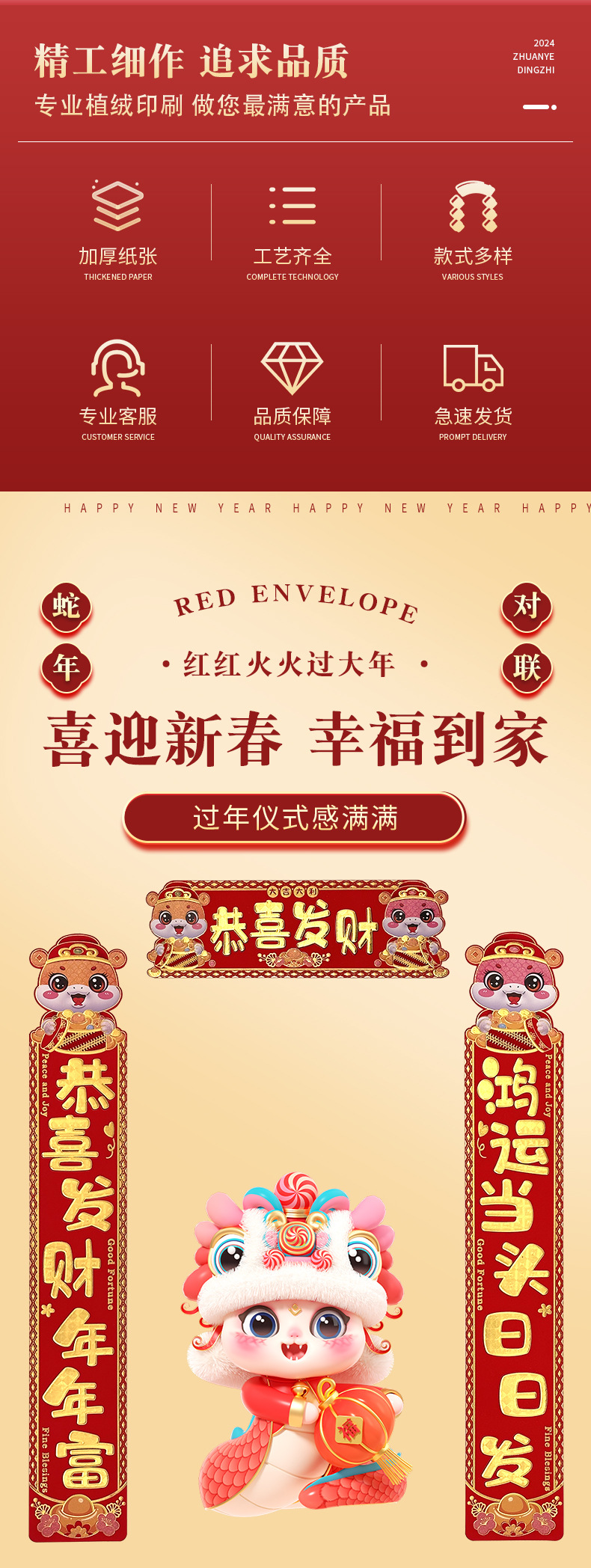 [send double-sided adhesive stickers] high-end gilding zodiac couplet-good luck
