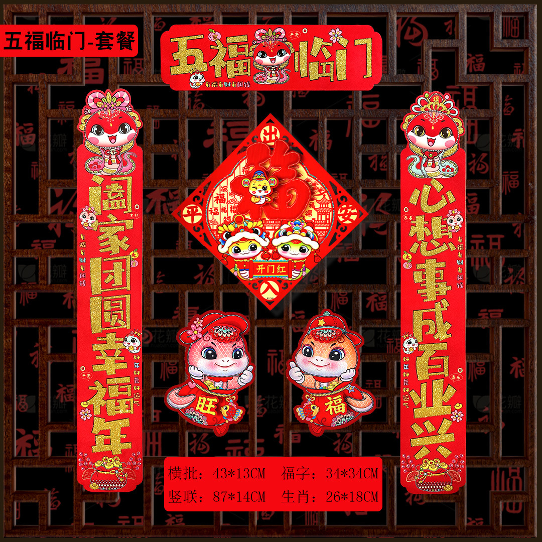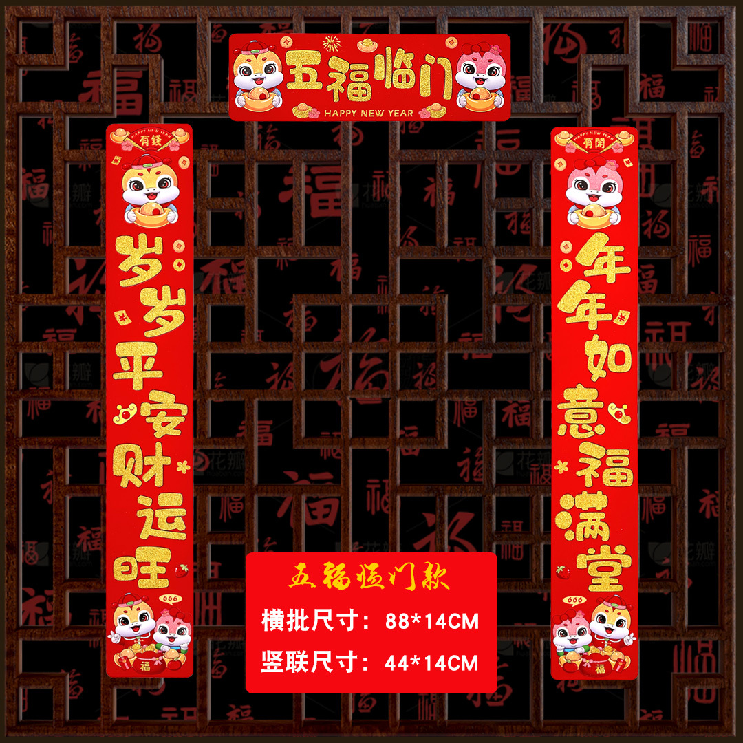 [five blessings package] cardboard gold powder zodiac couplet