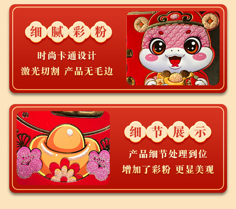 [send double-sided adhesive stickers] high-end gold powder zodiac couplet-five blessings