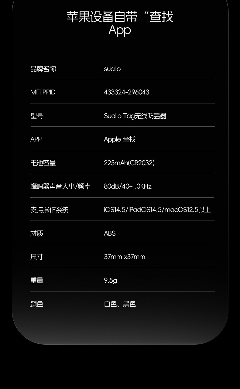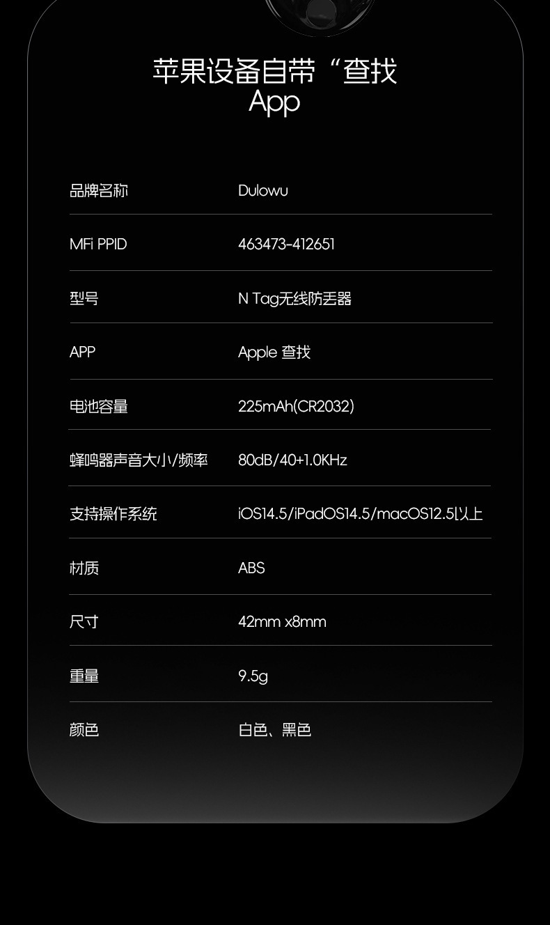 mfi certified anti-loss alarm device [black] round n tag