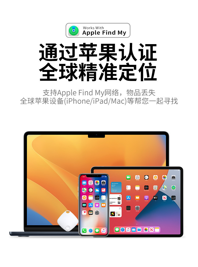 mfi certified global positioning anti-loss alarm device [white] diamond sualio tag