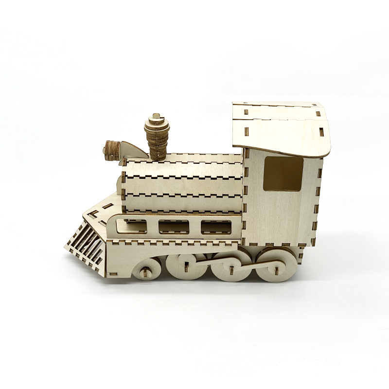 customized wooden train 3d puzzle creative three-dimensional puzzle toy diy assembling building blocks handmade model wholesale