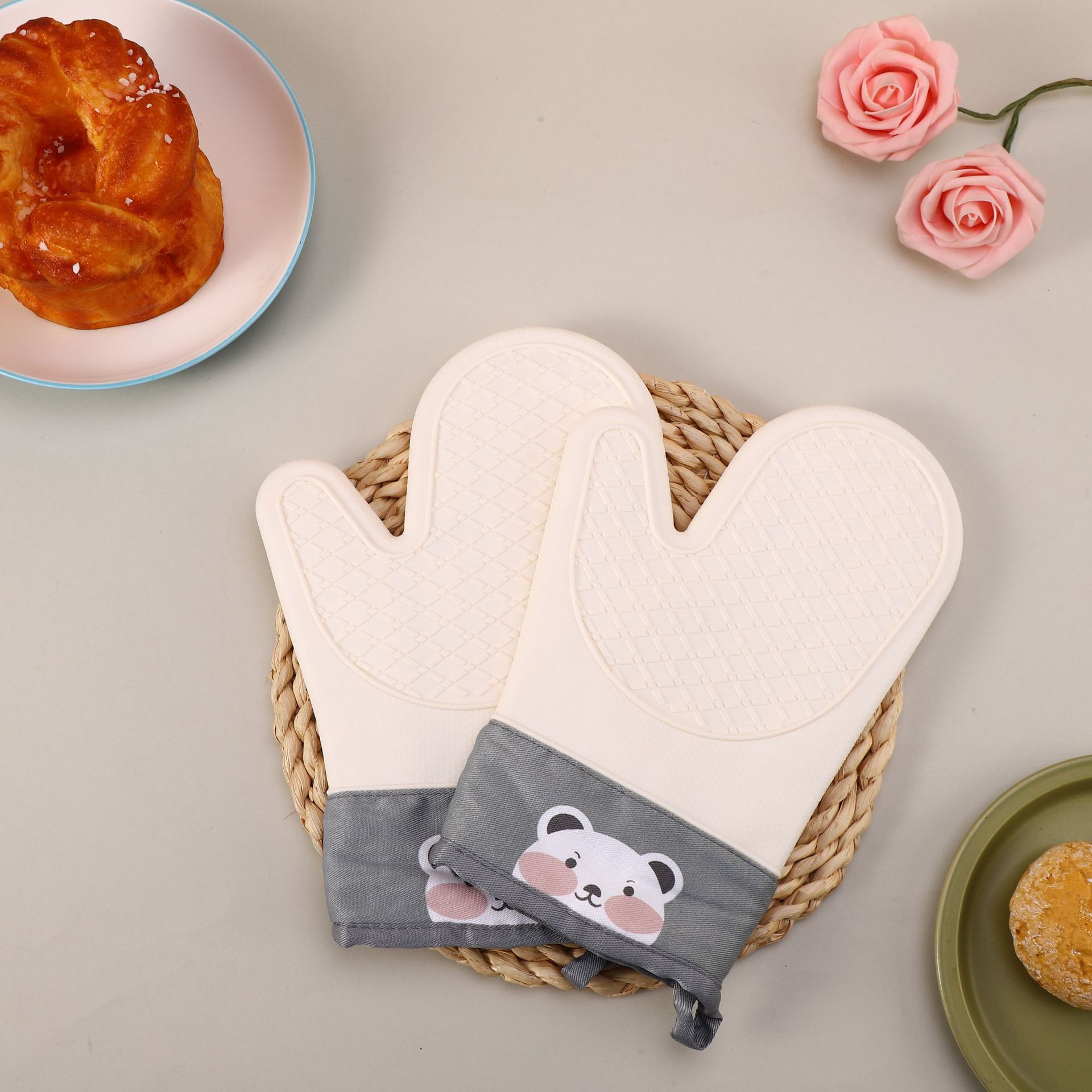 new silicone cotton cloth gloves twill double layer microwave oven gloves kitchen high-temperature resistant gloves wholesale