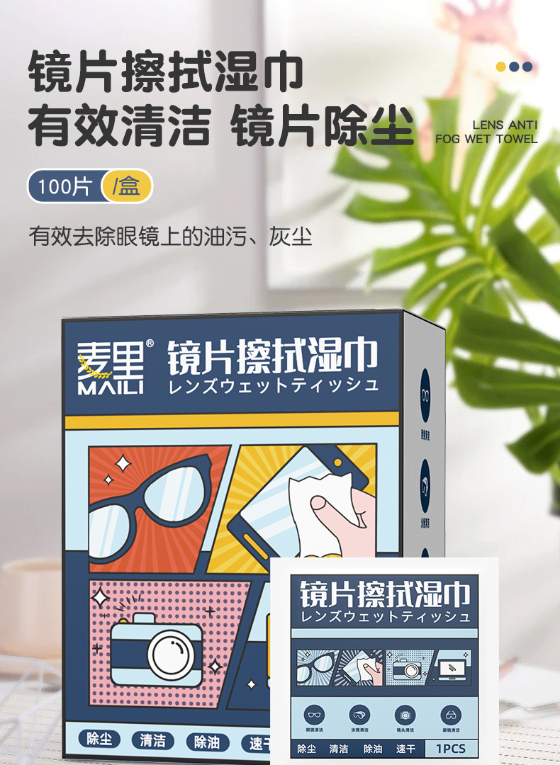 glasses anti-moist wipes (100 pieces)