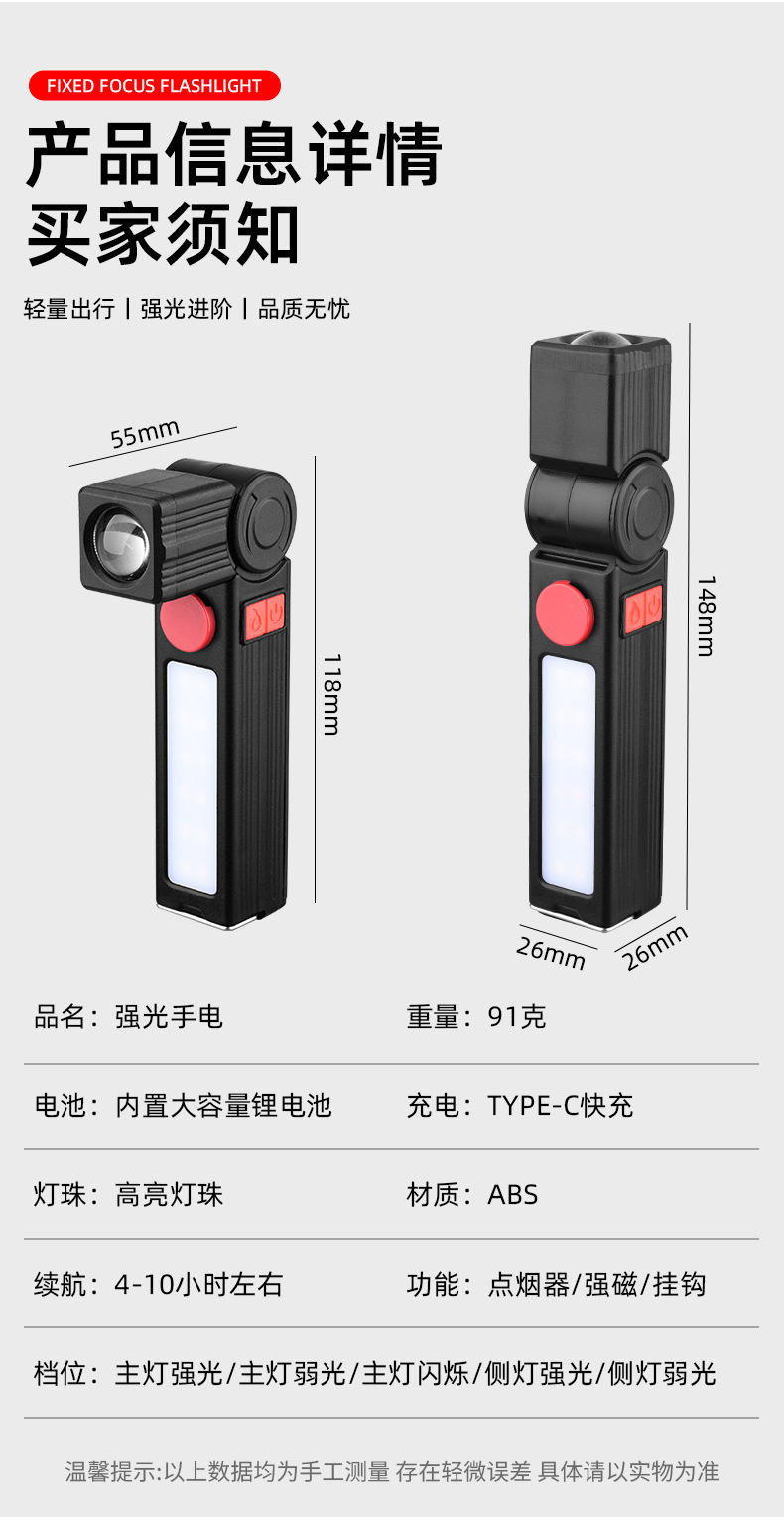 multi-function torch (with magnetic suction + cigarette lighter function + folding) color box + data cable