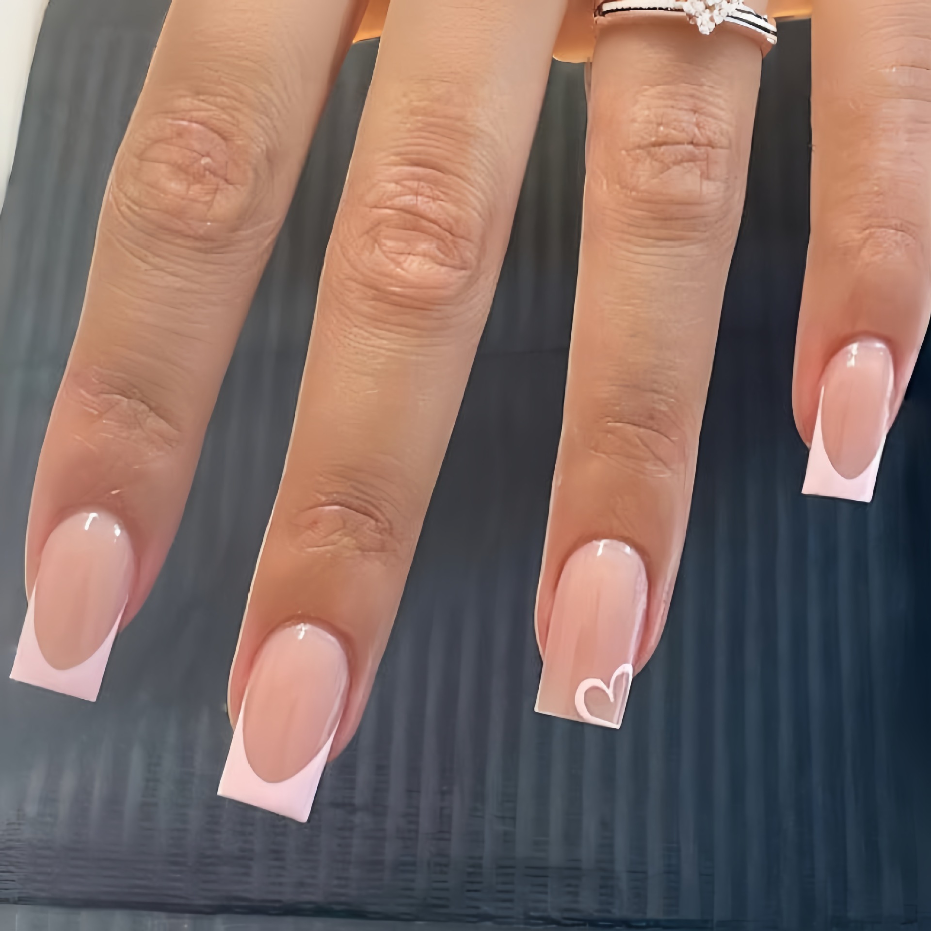 best seller in europe and america pink love 24 pieces per box european square nail pink french fake nails cute pink love heart simplicity