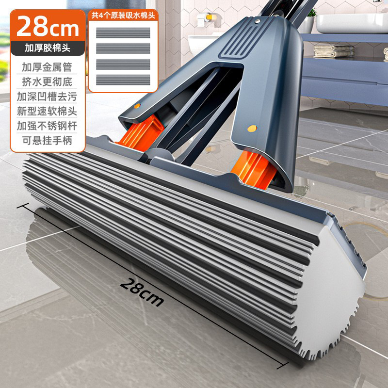 28cm thick sponge mop +4 cotton heads [reinforced stainless steel rod]]