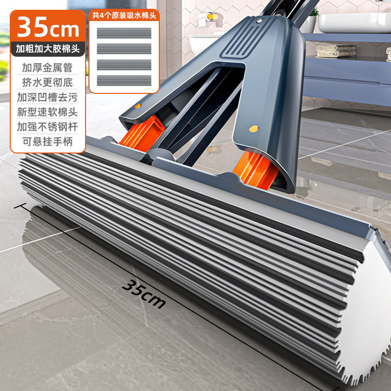 35cm thick plus-sized sponge mop +4 cotton heads [reinforced stainless steel rod]]