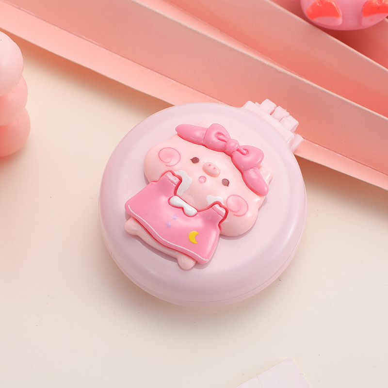 new creative cute pig cartoon air cushion comb 2-in-1 mini-portable foldable mirror and comb folding airbag comb