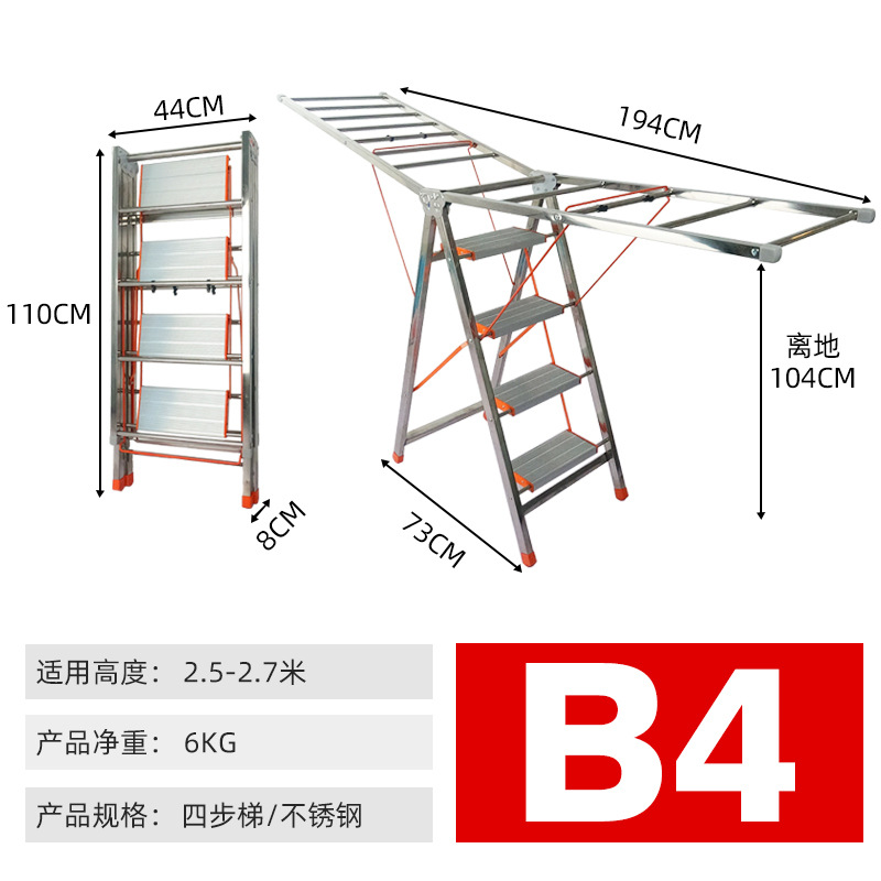 four-step ladder single side ladder (stainless steel)