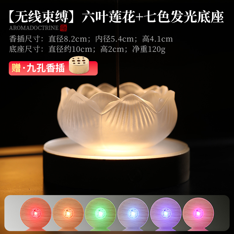 [wireless binding] six-leaf lotus + seven-color luminous base [send · nine holes incense holder + wipe
