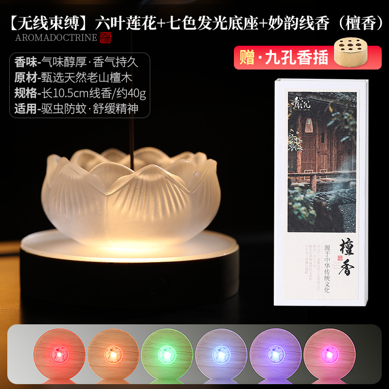 [wireless binding] six-leaf lotus + seven-color luminous base + miaoyun joss-stick (sandalwood)