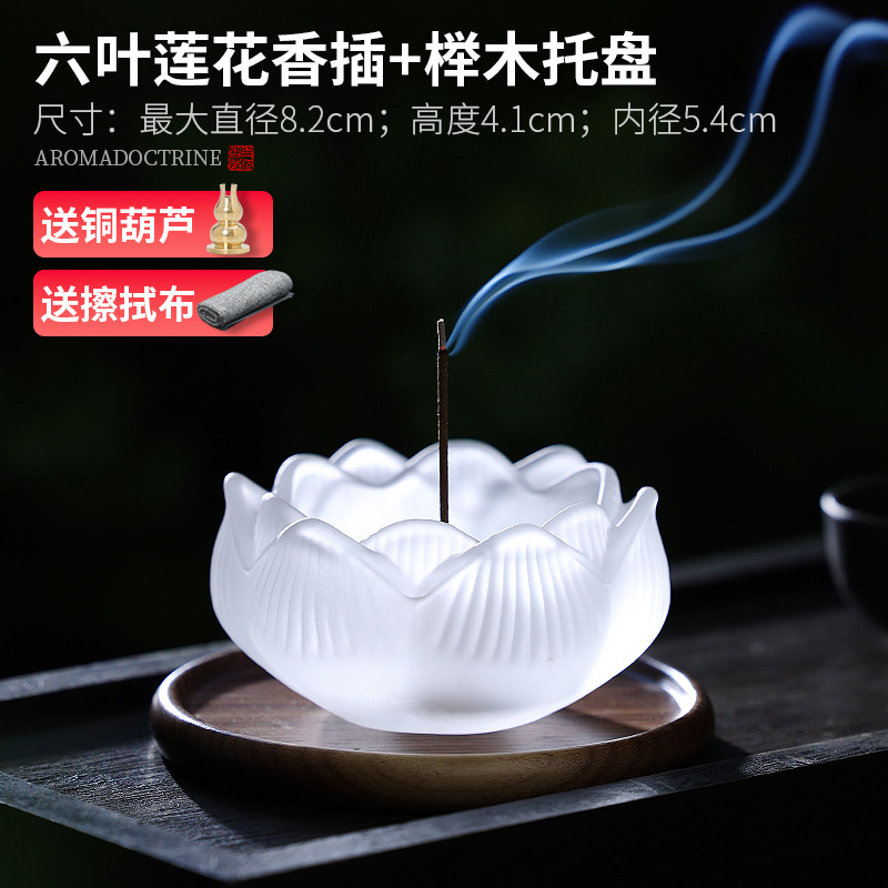 [ethereal choice] six-leaf lotus belt incense holder [send · nine holes incense holder + fabric wiper]]