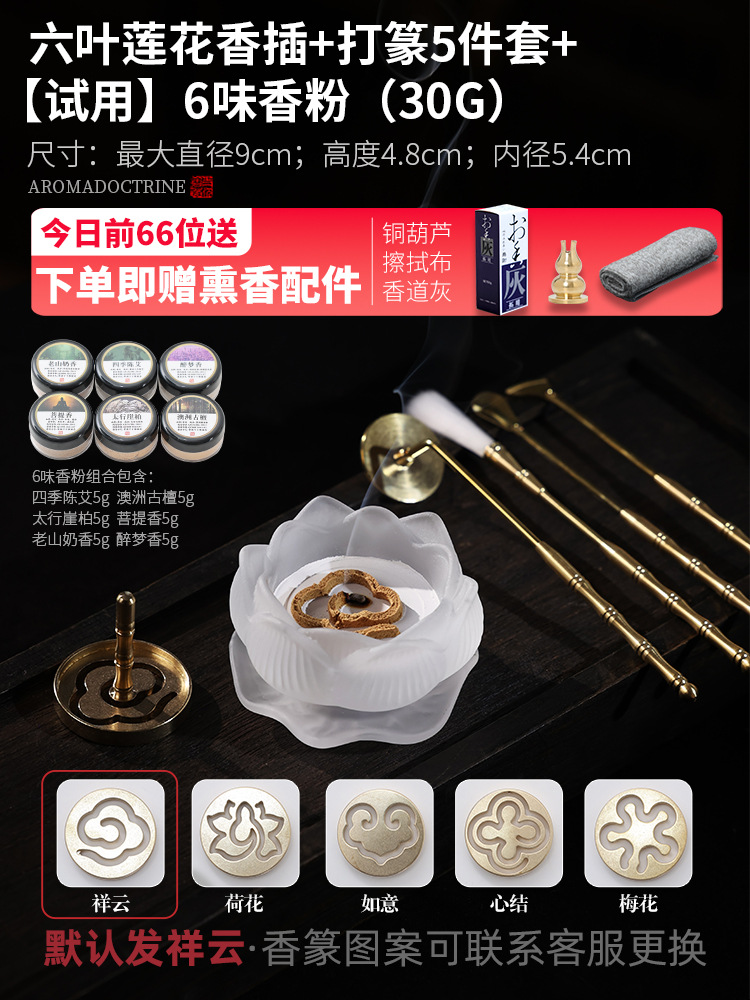 [ethereal choice] six leaves lotus incense stick + incense molding 5-piece set + [trial] 6 flavor powder