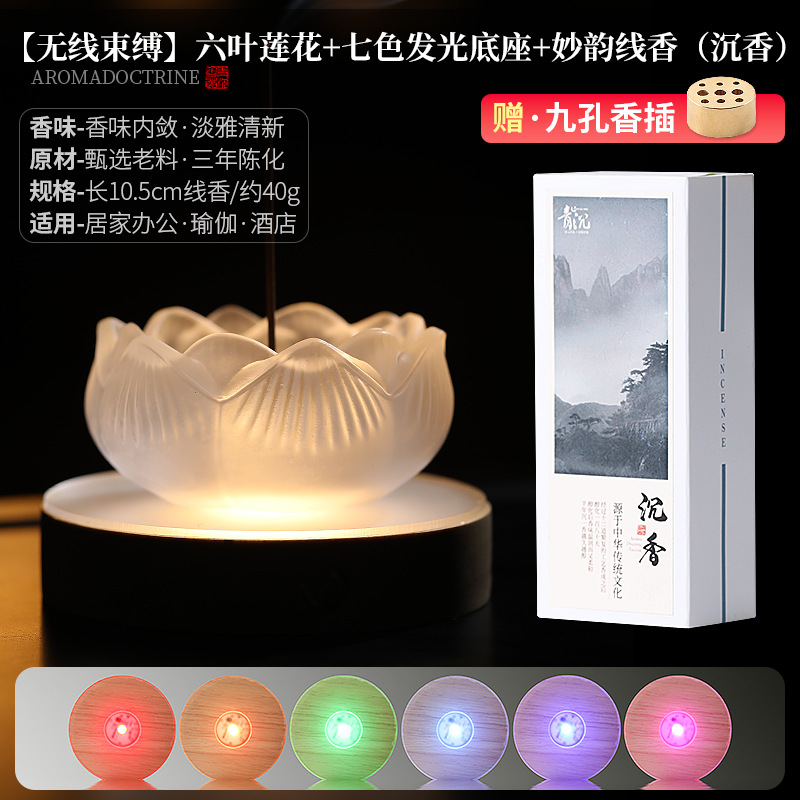 [wireless binding] six-leaf lotus + seven-color luminous base + miaoyun joss-stick (agarwood)