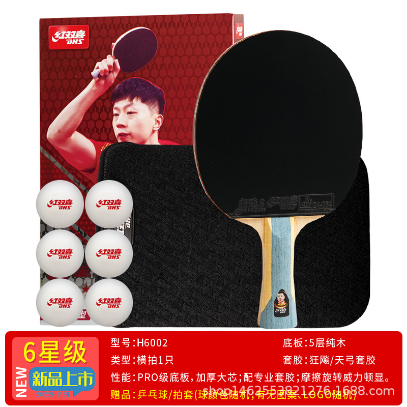 h six-star shakehand grip single + racket cover + table tennis