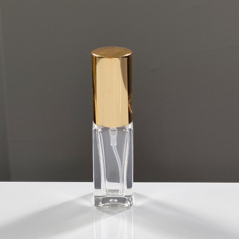 square perfume bottle; 5ml gold; glass