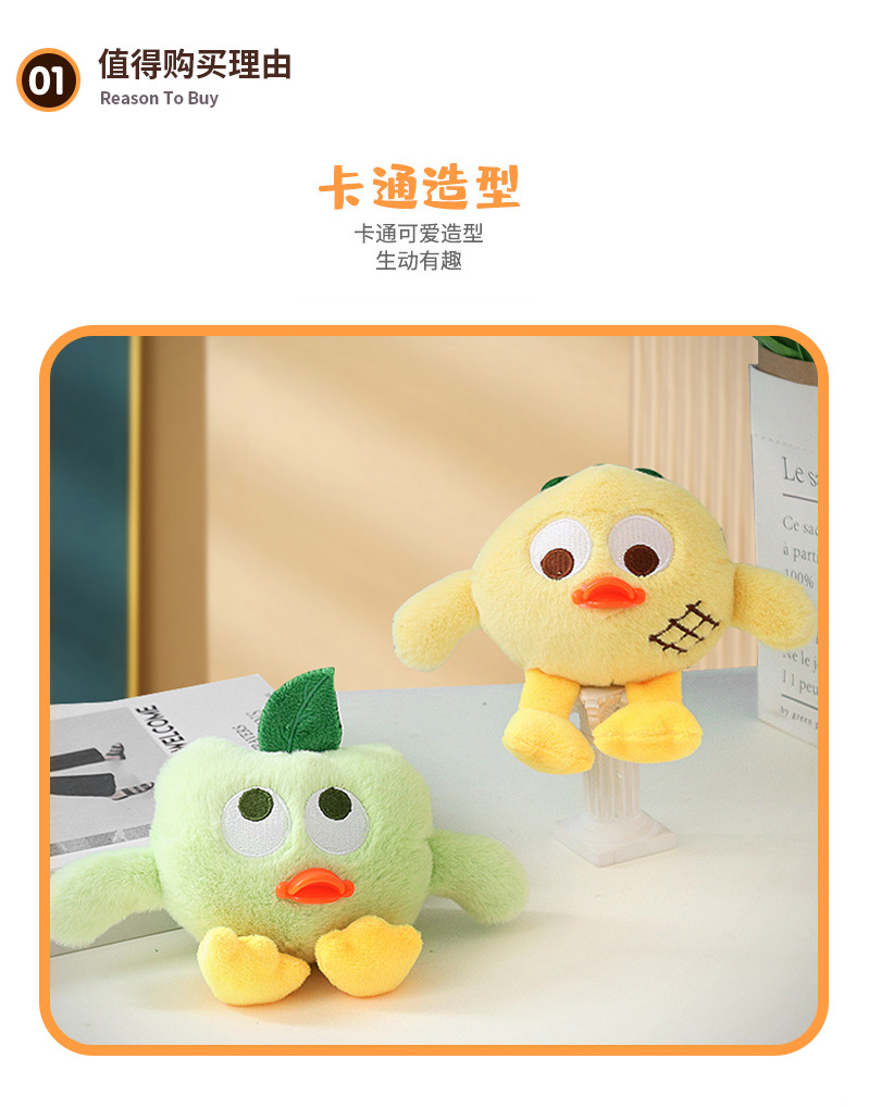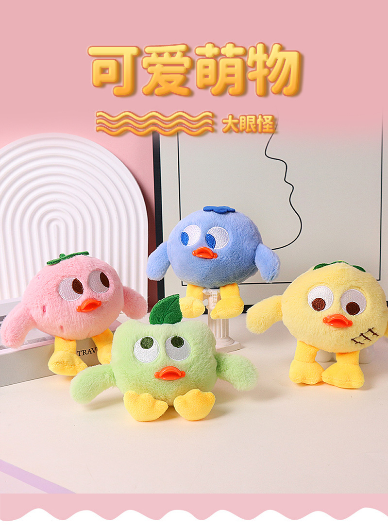 cute small yellow duck cross-dressing fruit series doll plush key chain bag charm pendant prize claw doll