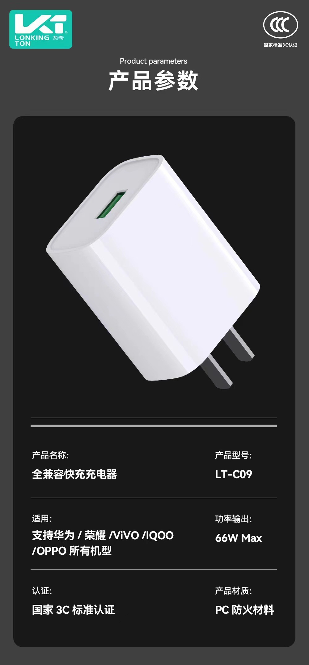 3c/c09 charger with packaging (single head without cable)