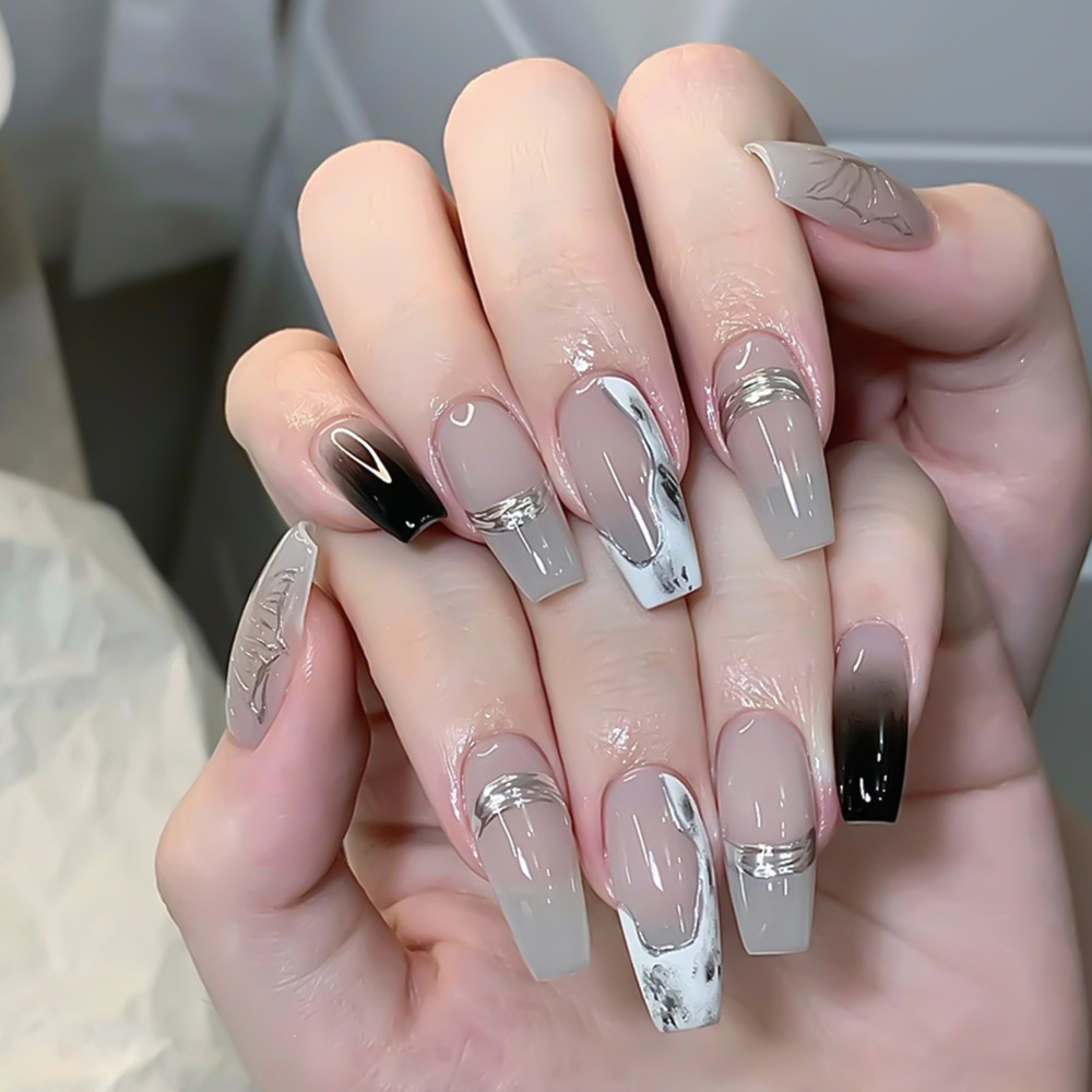 autumn and winter cool cold gray gradient color wear armor magical mirror pink butterfly temperament girl nail sticker 24 pieces nails