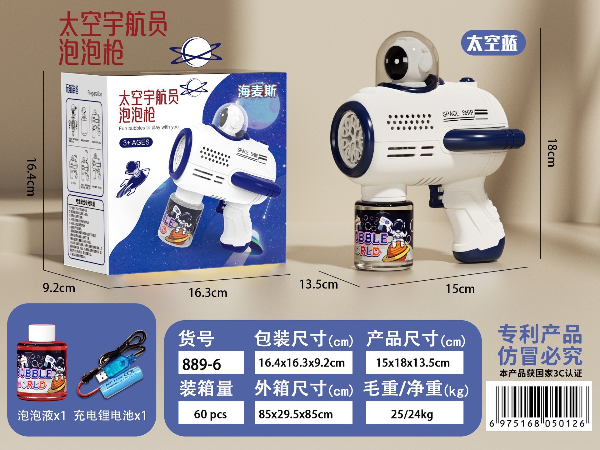 astronaut bubble machine-blue [rechargeable] color box-send lithium battery