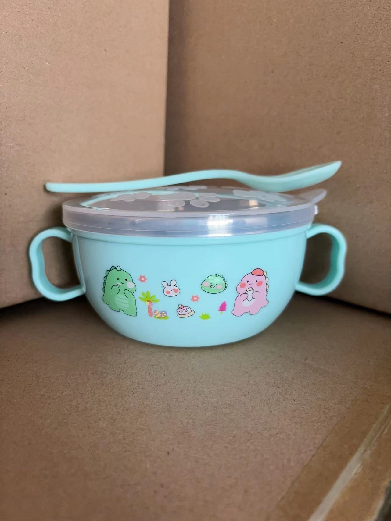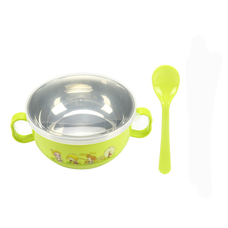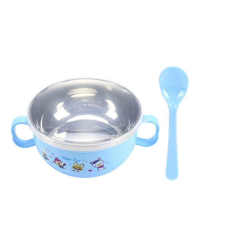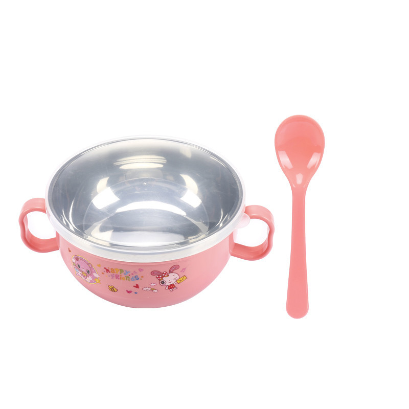 children's stainless steel binaural baby special solid food bowl cartoon double insulation insulated bowl with lid spoon drop-resistant