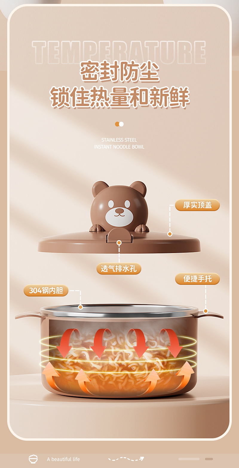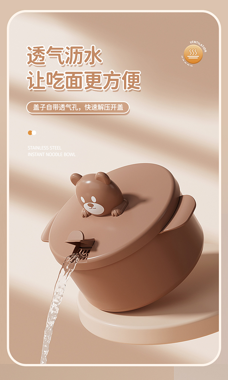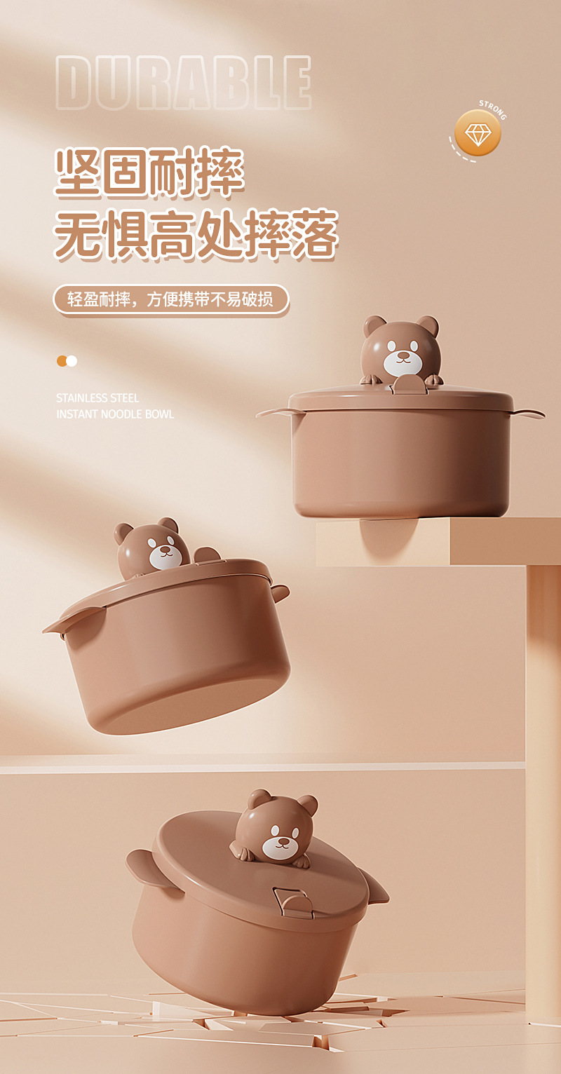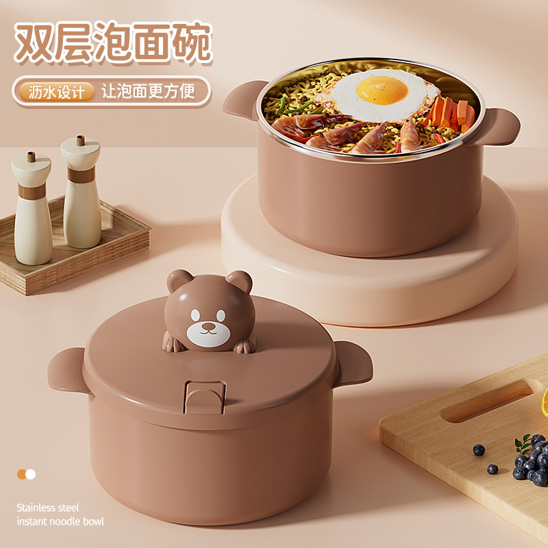 304 stainless steel liner bear instant noodle bowl