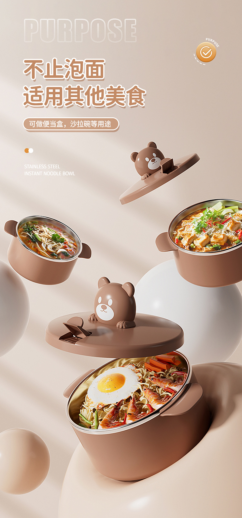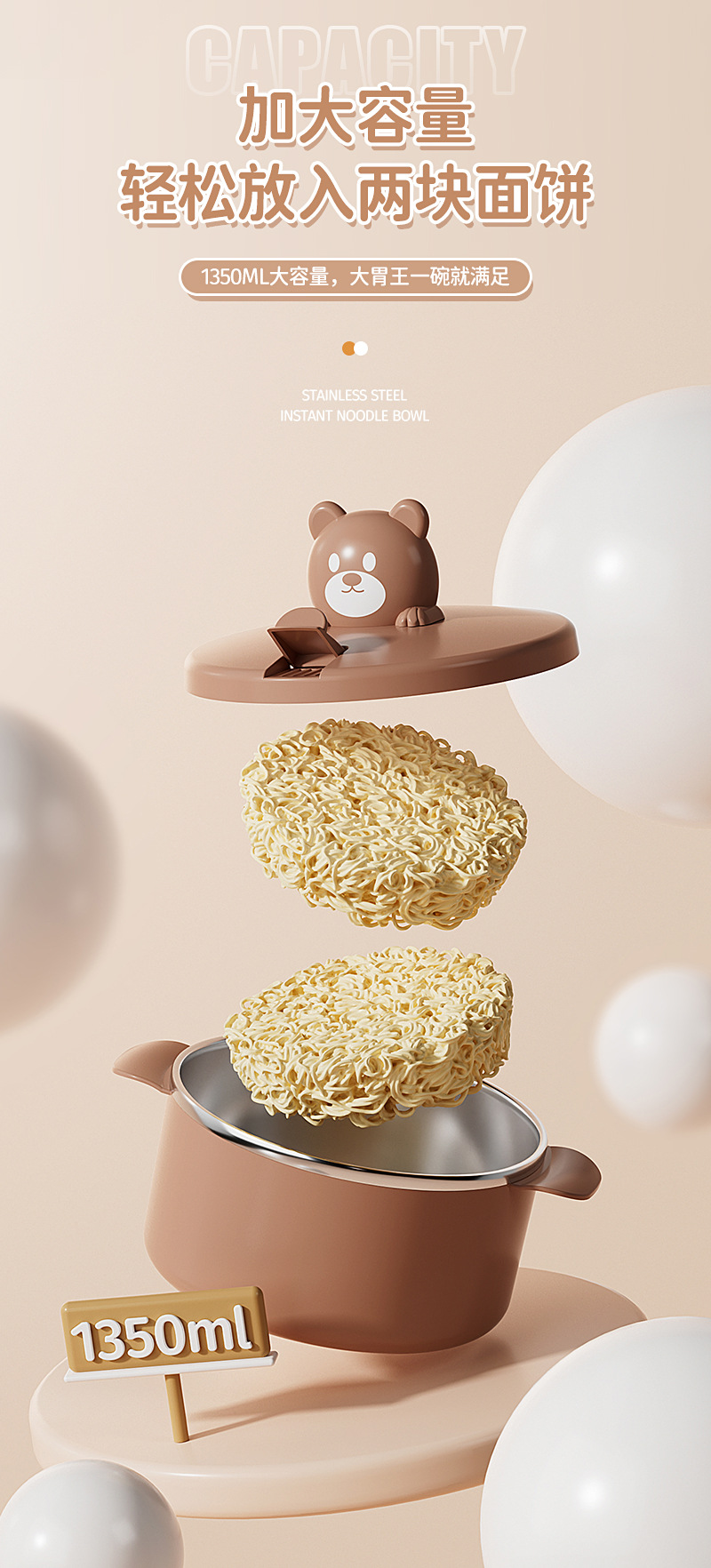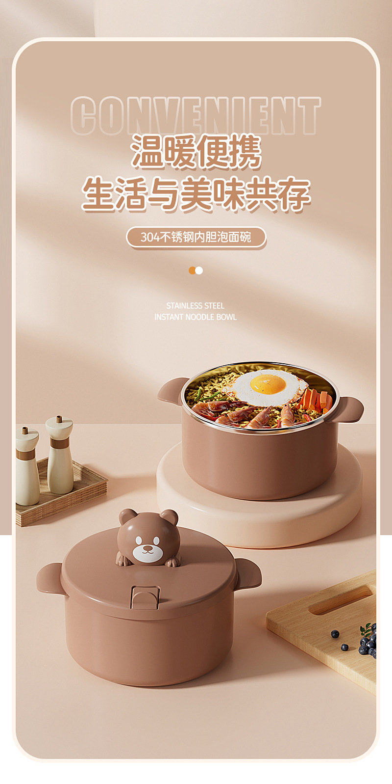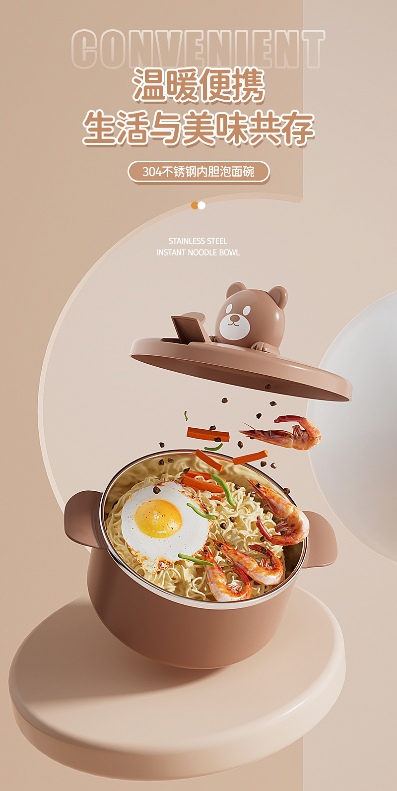 304 stainless steel liner bear instant noodle bowl