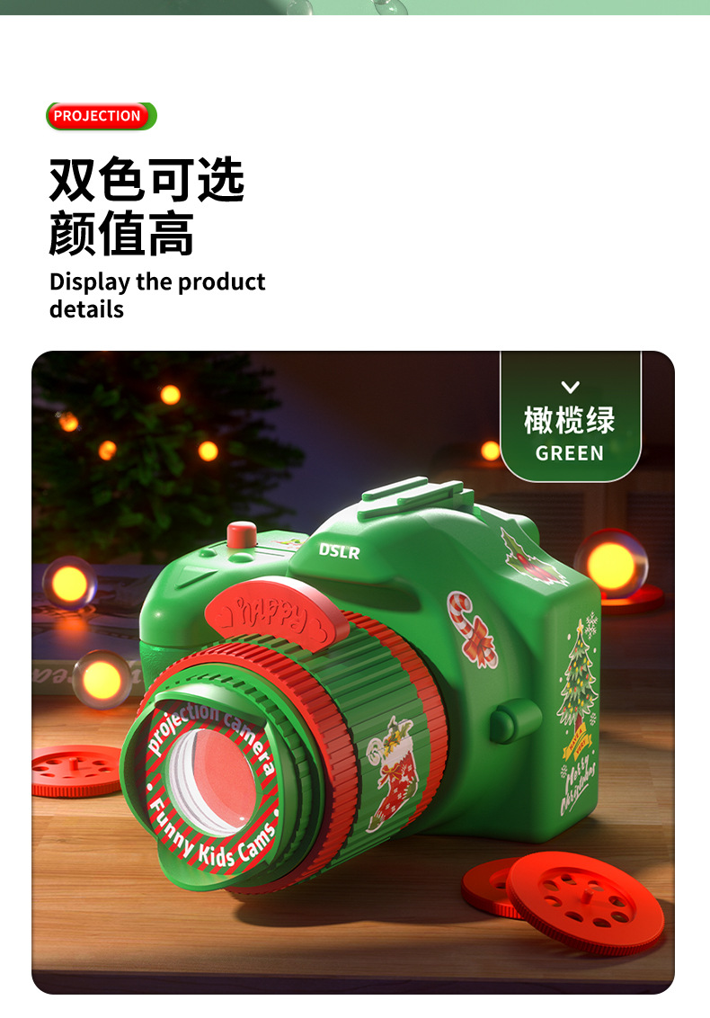 christmas camera green +3 slides [english color box] no battery
