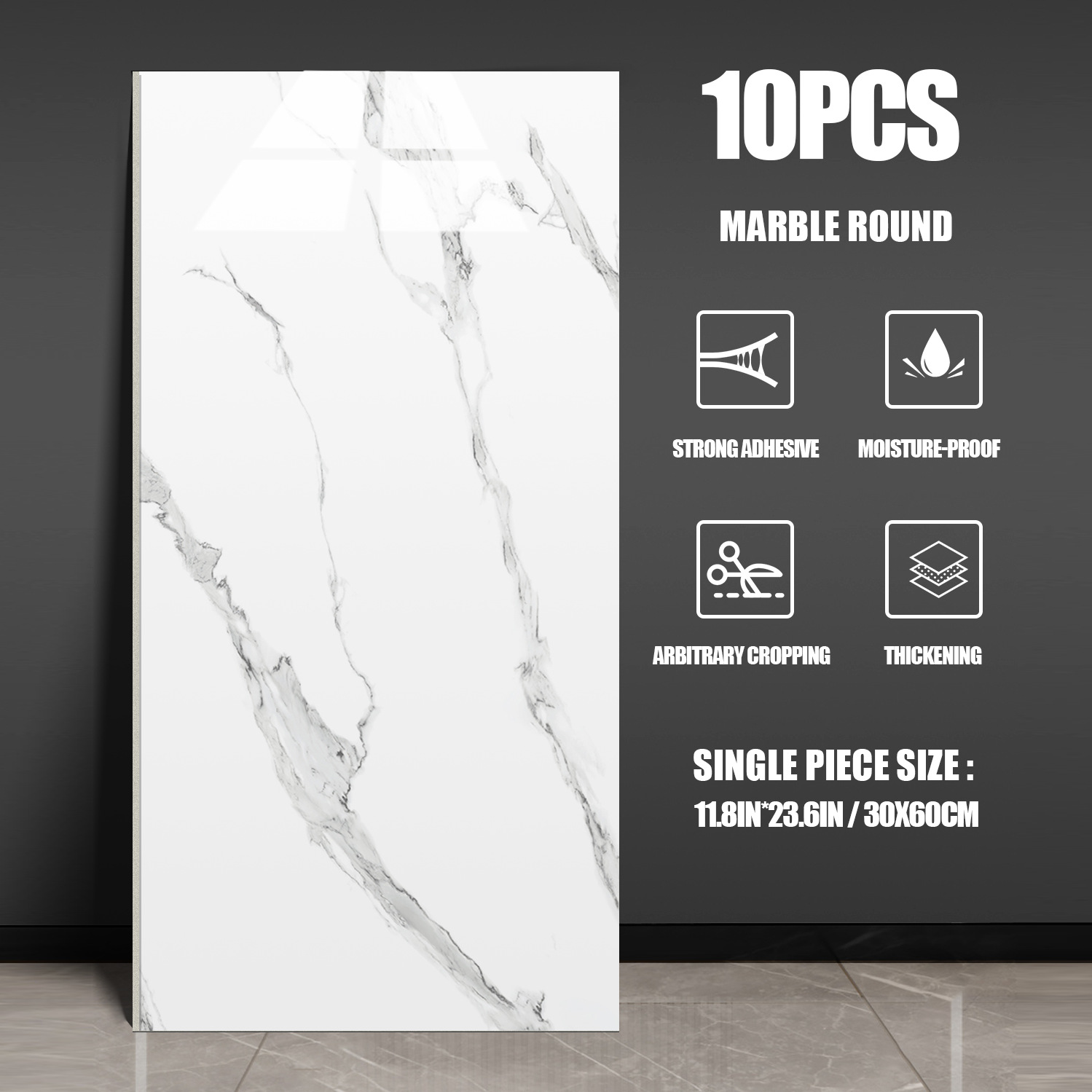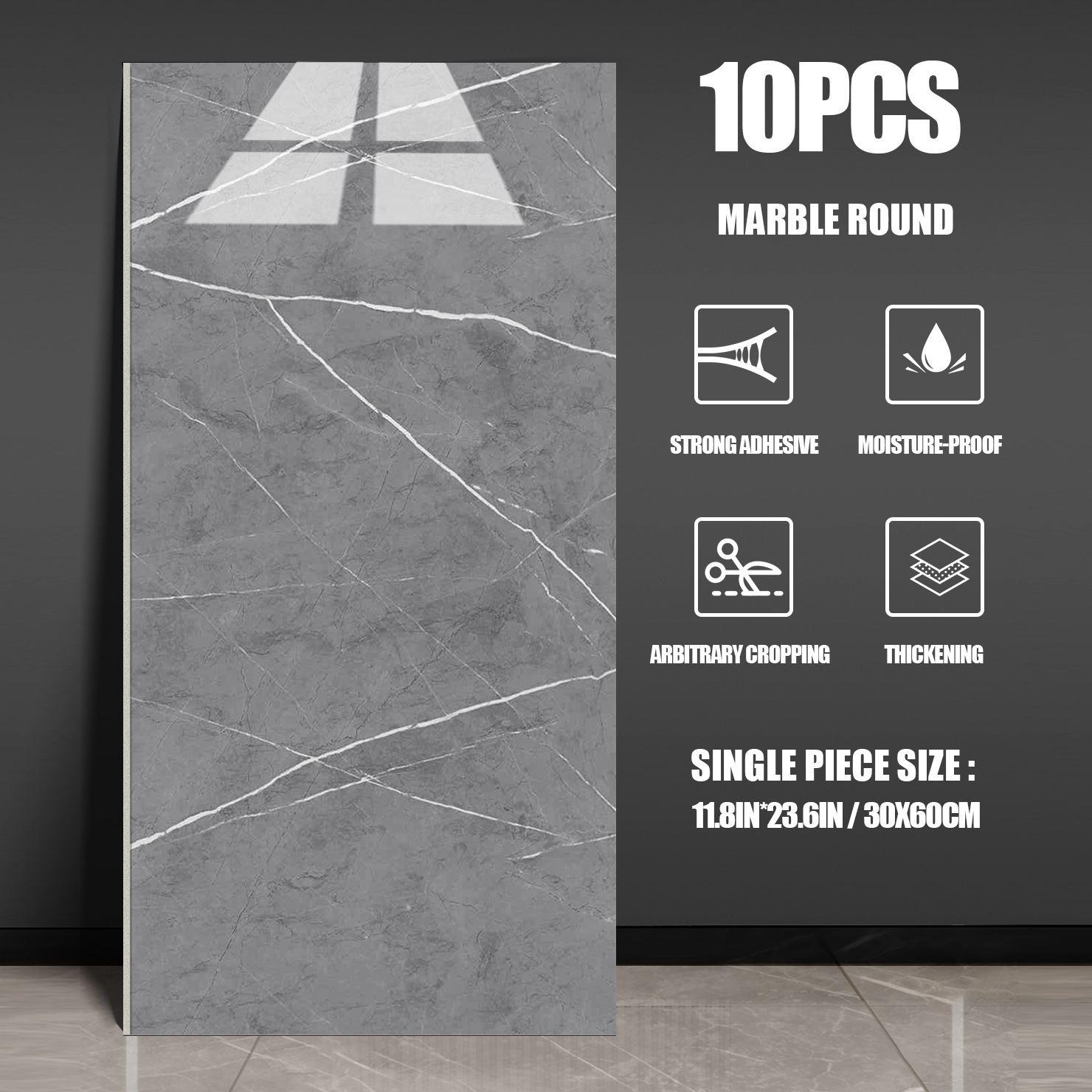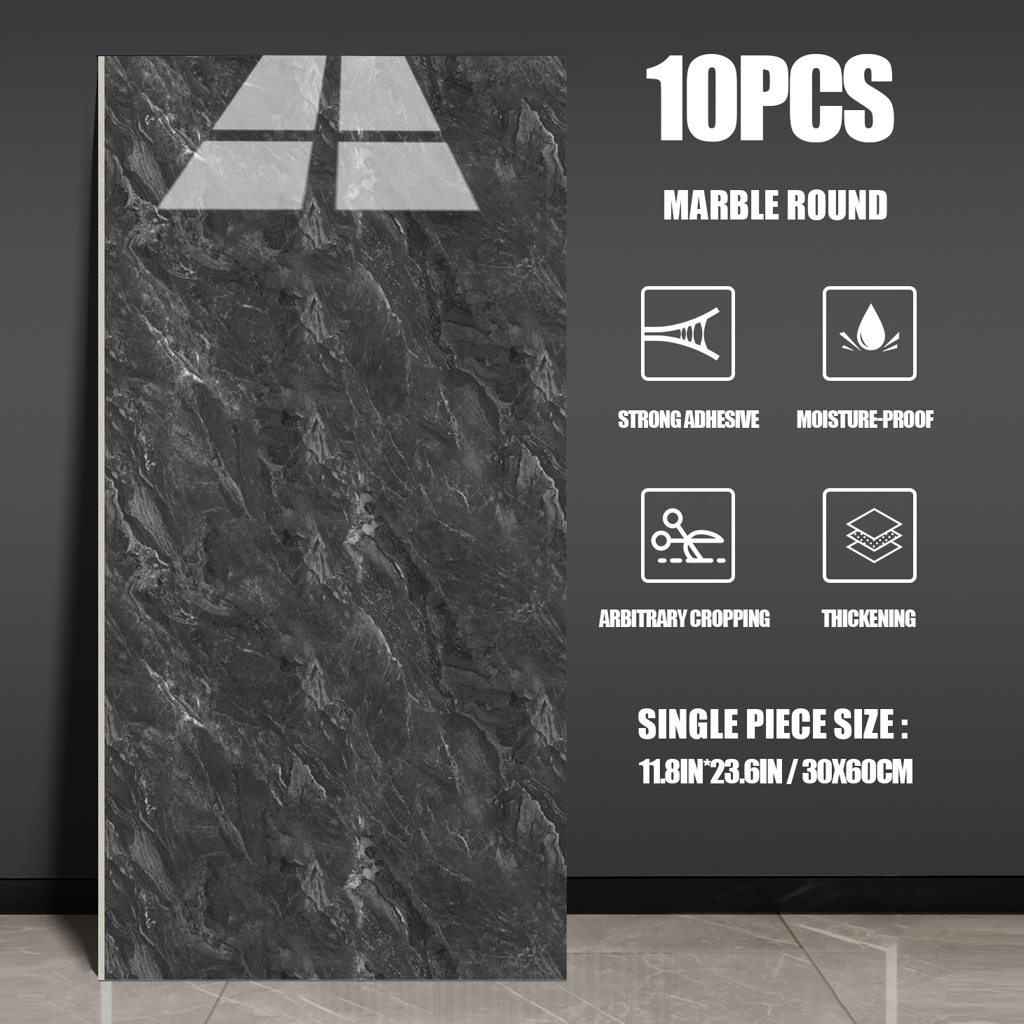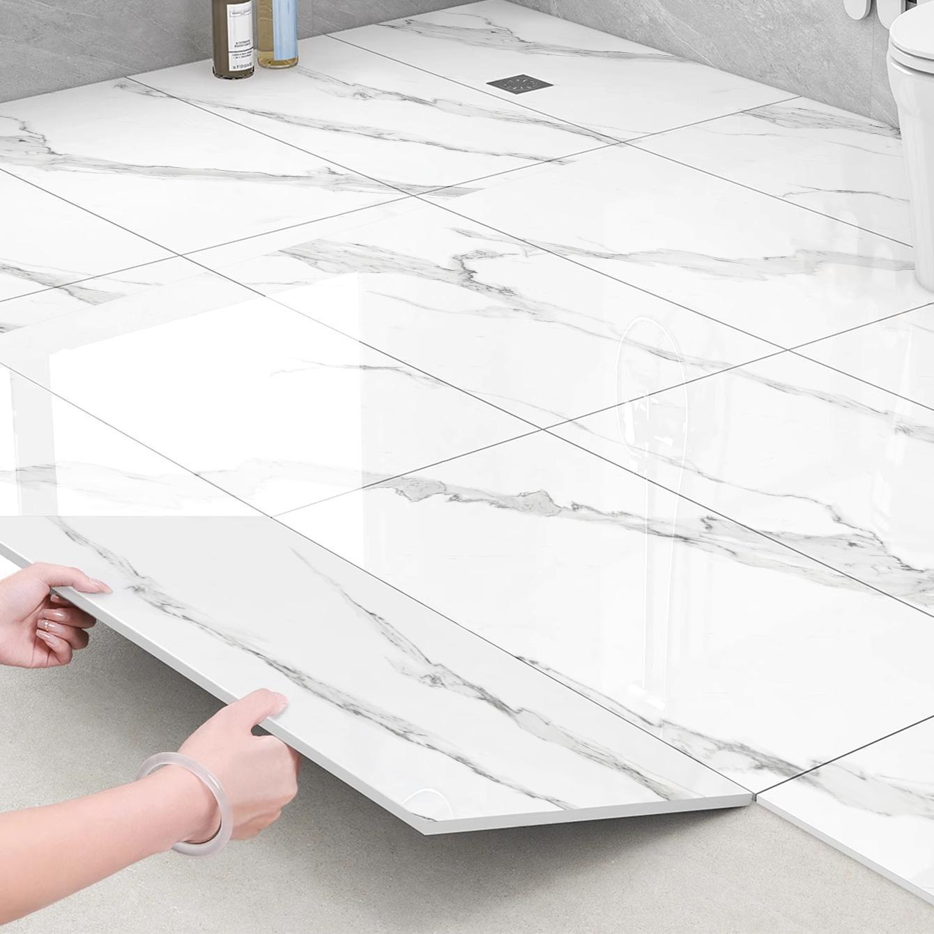 Marble tile wall stickers made of eco-friendly PVC material.