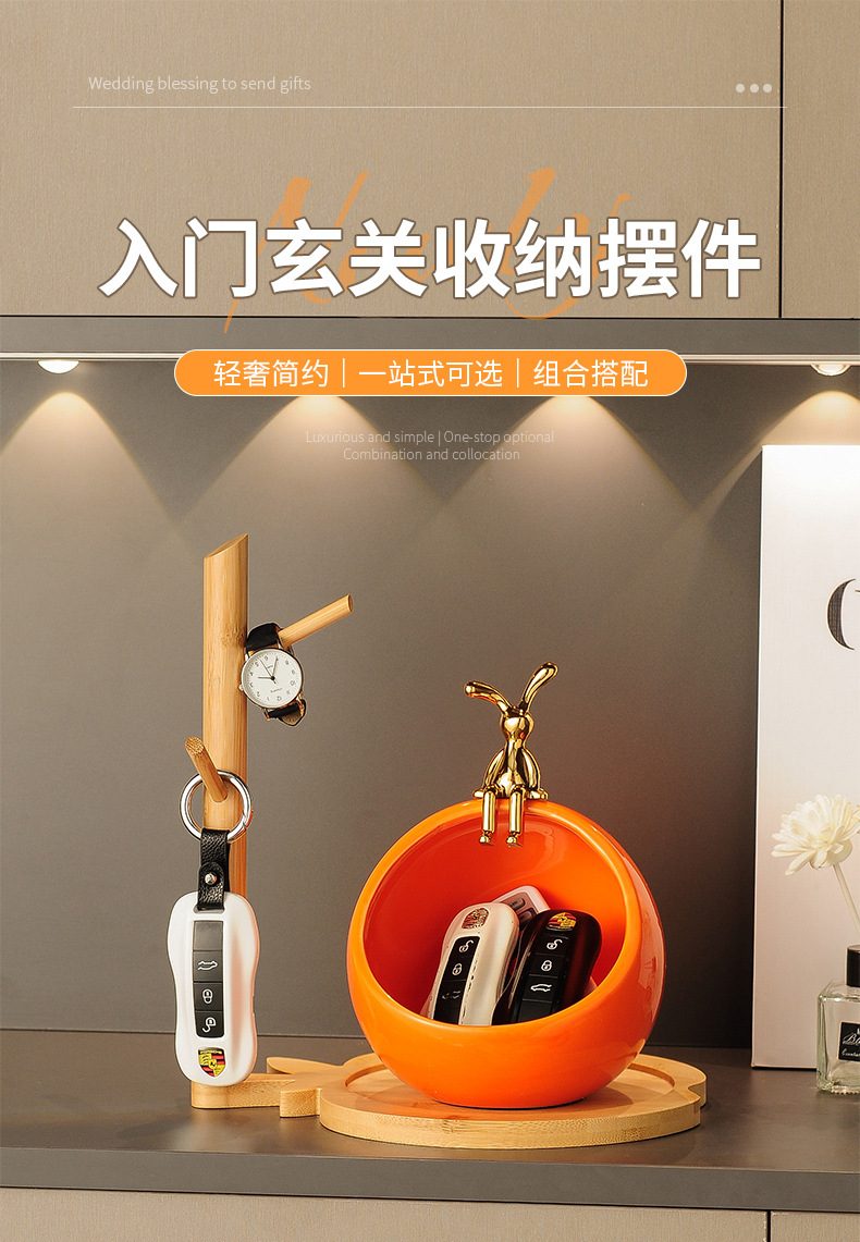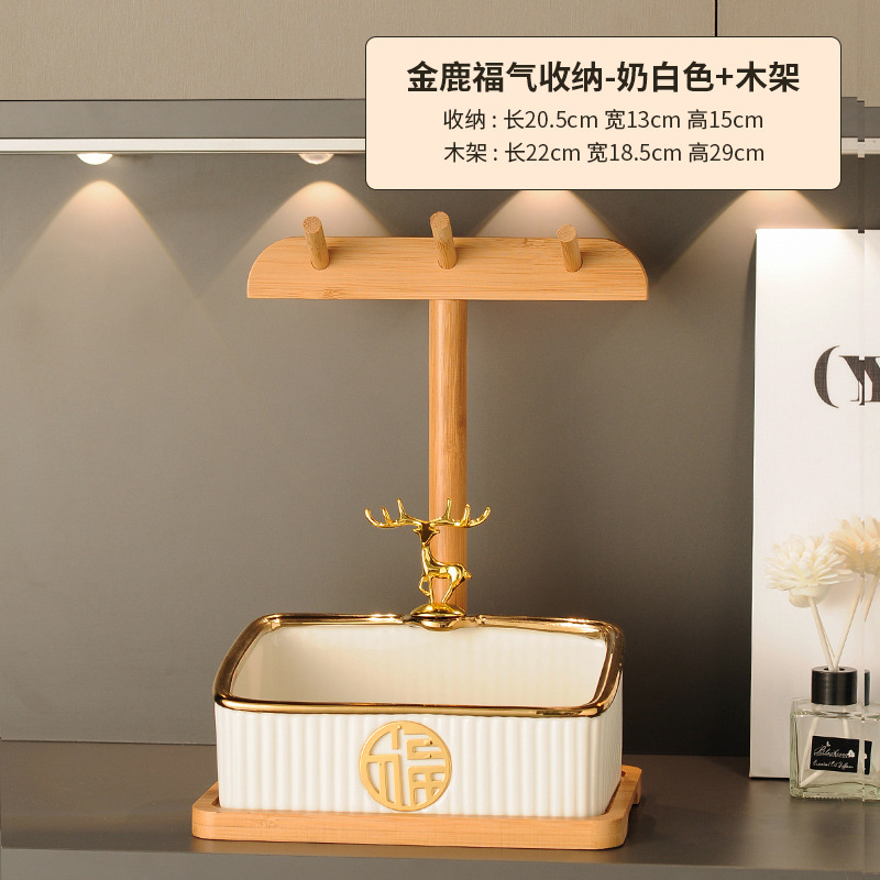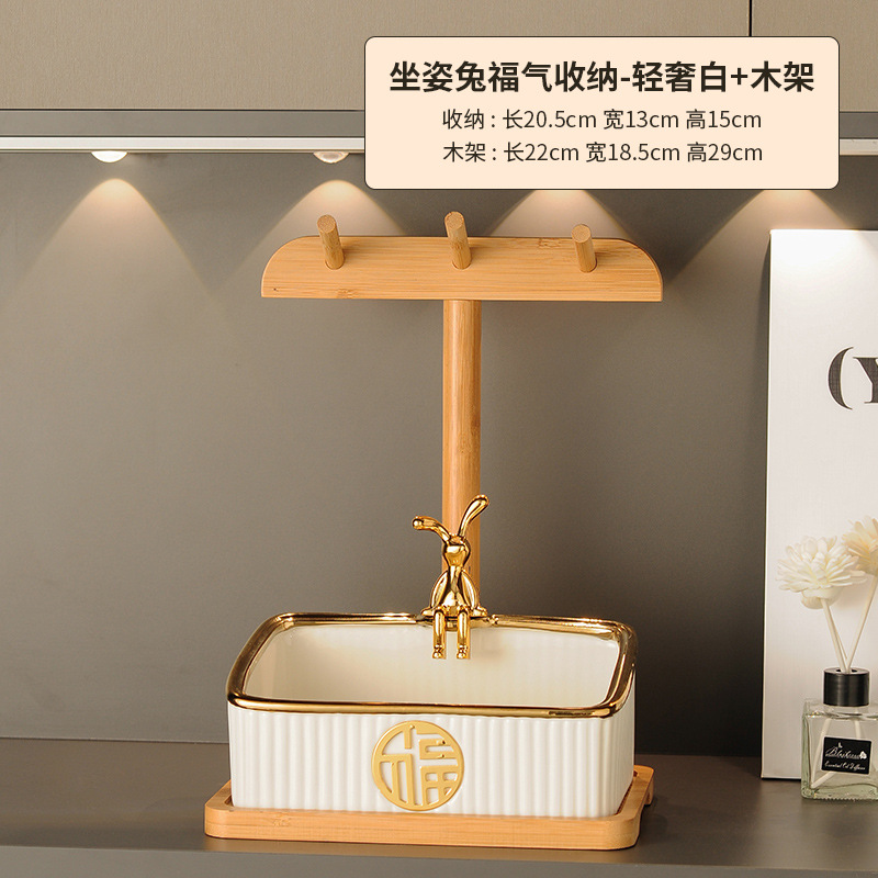 sitting rabbit lucky storage-light luxury white + wooden rack