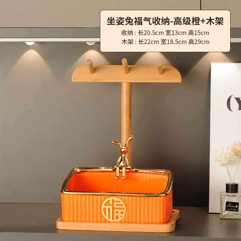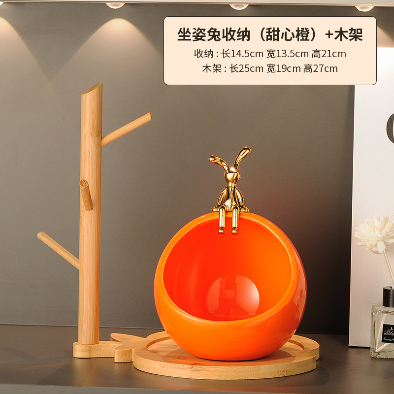 sitting rabbit lucky storage-advanced orange + wooden rack