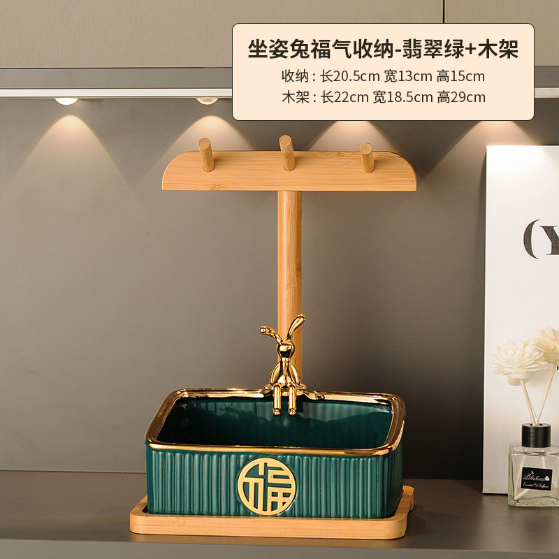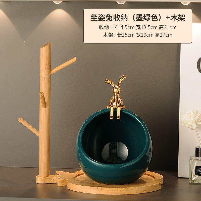sitting rabbit lucky storage-emerald green + wooden rack