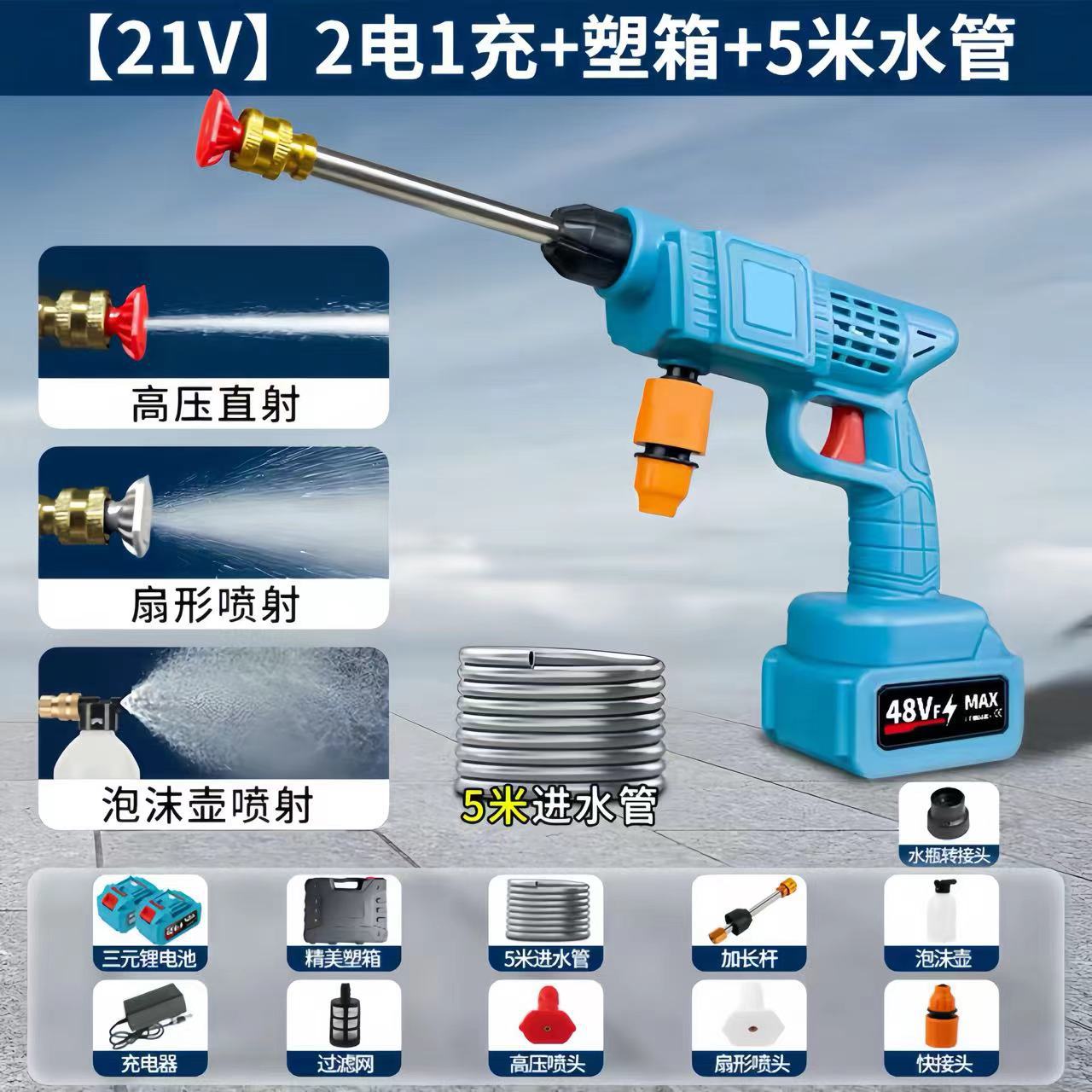 [21v six-in-one nozzle] 1200 capacity 5 sections 2 electricity 1 charge + plastic box +5 m water pipe