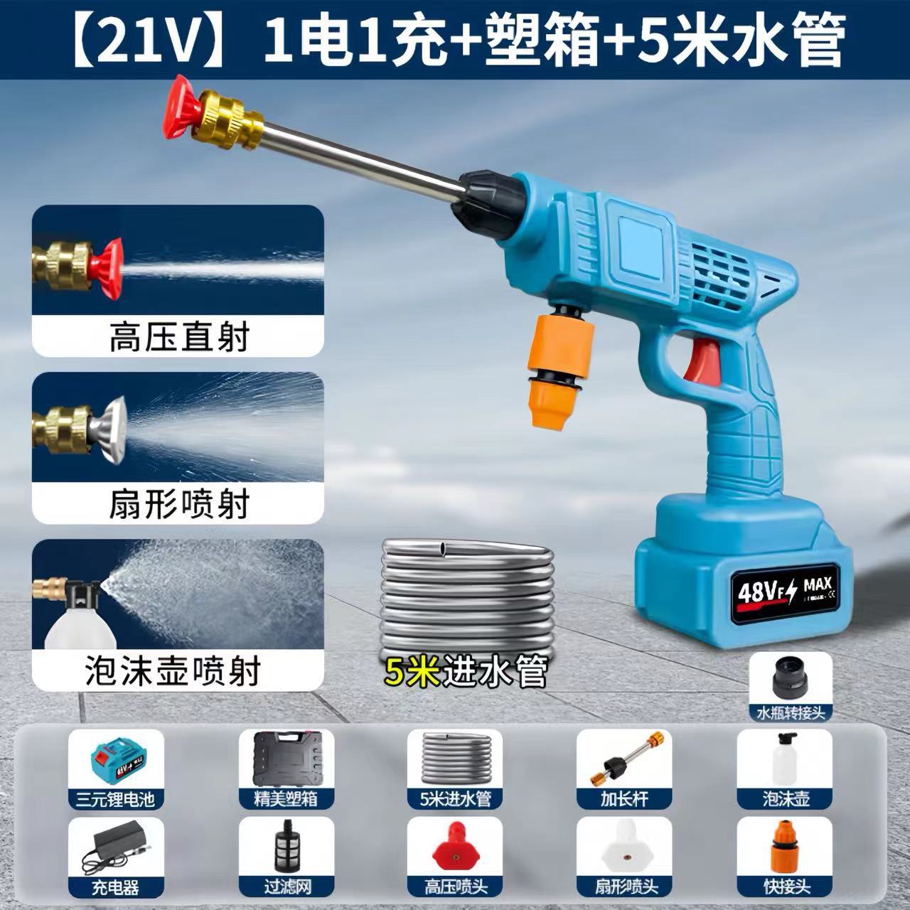 [21v six-in-one nozzle] 1200 capacity 5 sections 1 electricity 1 charge + plastic box +5 m water pipe