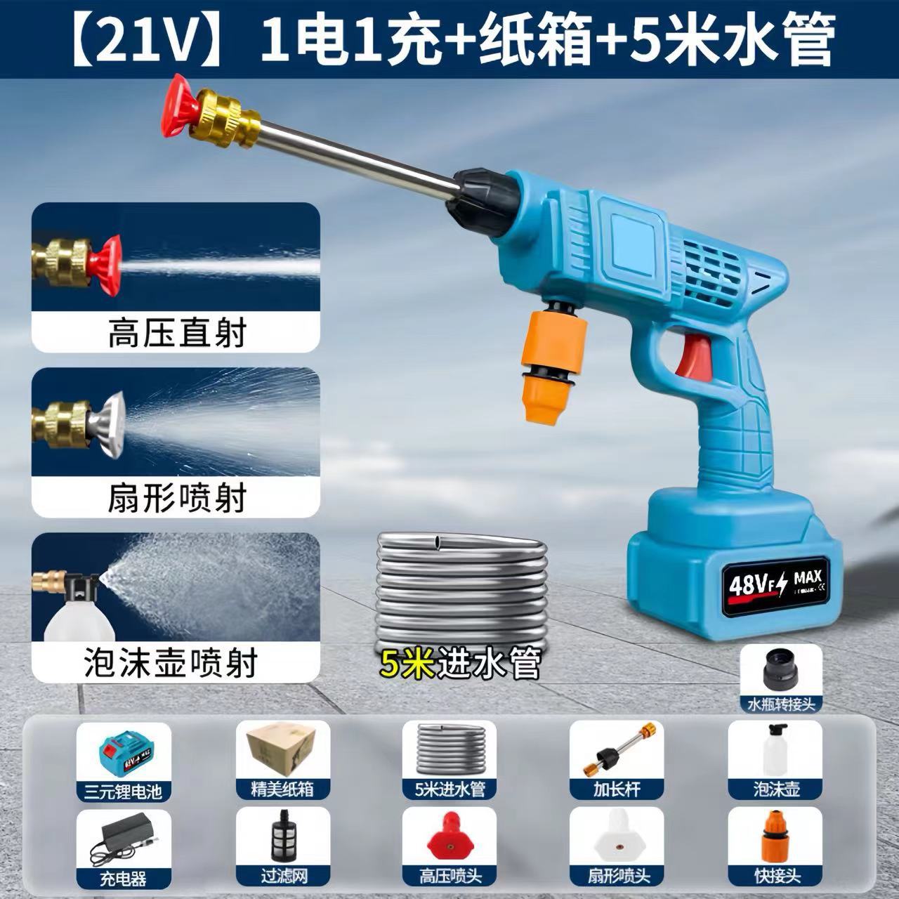 [21v six-in-one nozzle] 1200 capacity 5 sections 1 electricity 1 charge + carton +5 m water pipe