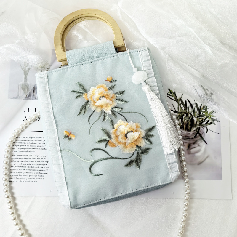 semicircle suzhou embroidery + camellia + green lotus tassel