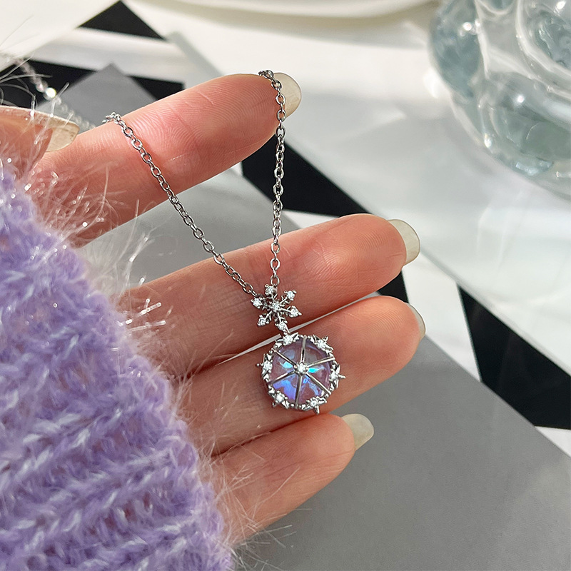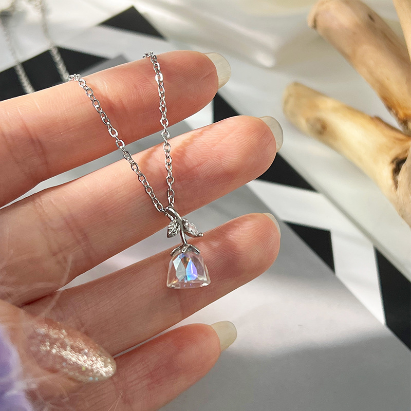x5318# fluorescent silver small flower necklace
