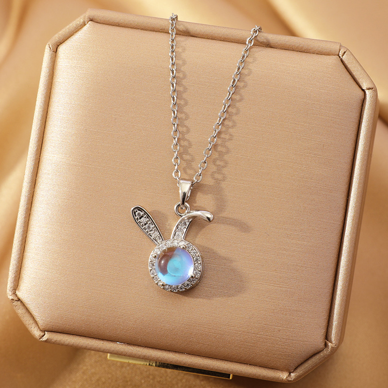 x5426# silver fluorescent rabbit necklace