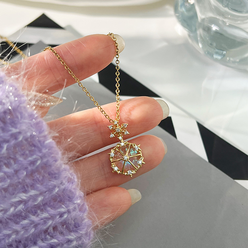 x5314# fluorescent double x gold planet necklace