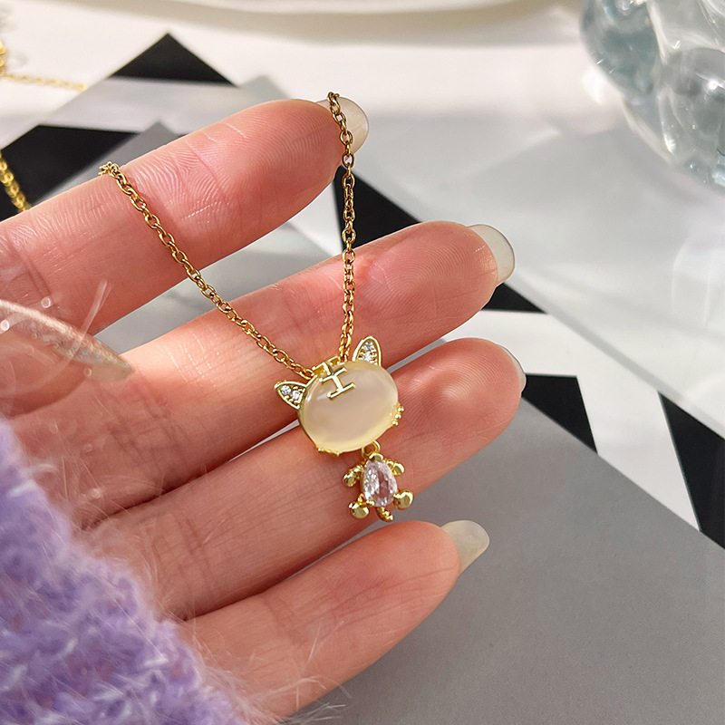 x5310# fluorescent micro inlaid zircon golden hare necklace