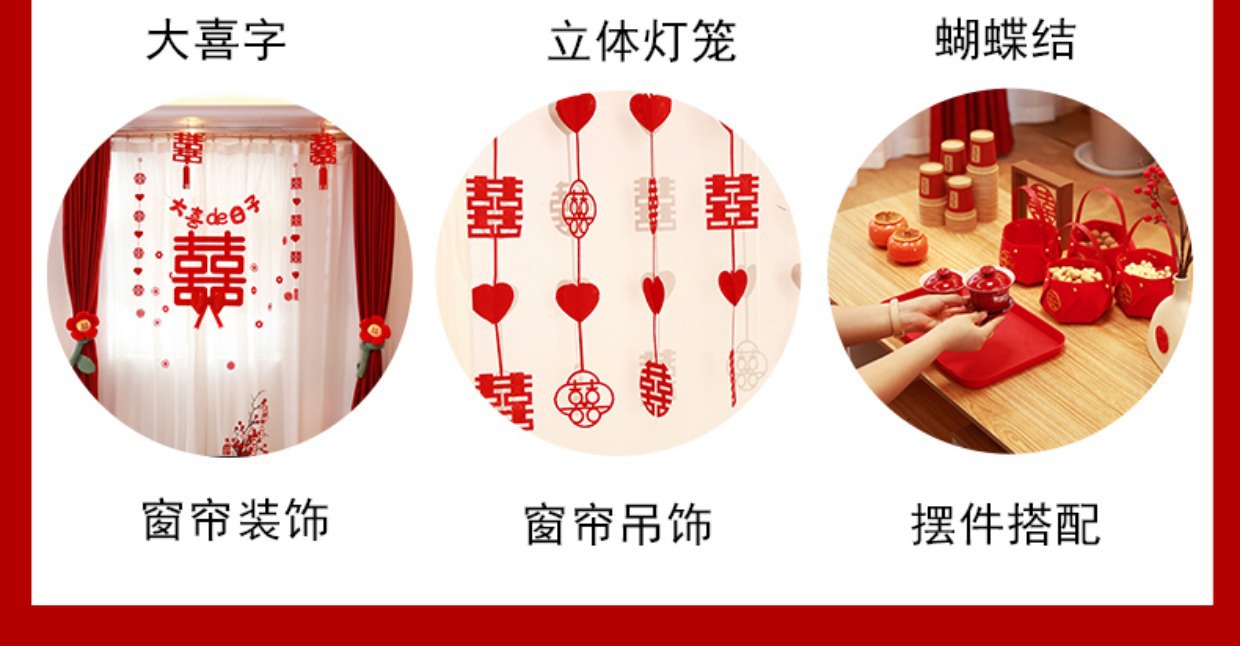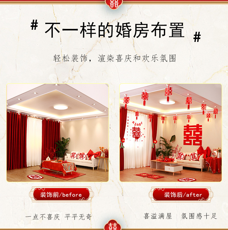 three-dimensional xi decorations 12+60# big chinese character xi